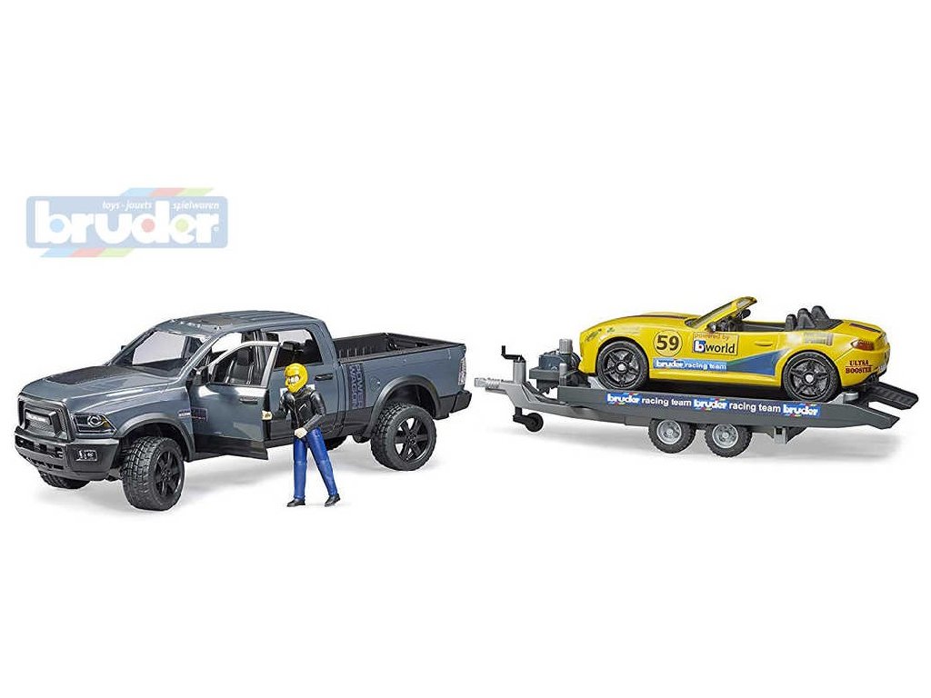 BRUDER 02504 RAM Roadster Racing Team set odtahovka se sporťákem a figurkou
