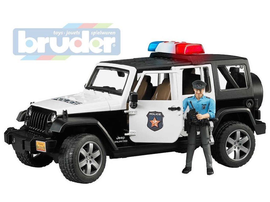 Bruder 2526 Jeep Wrangler Policie je novinkou roku 2015 v sortimentu Bruder. Jedná se o věrnou kopii opravdového Jeepu,s velmi detailně zpracovaným modelem motoru a z části zasklenou kabinou řidiče. který zvládne jakýkoliv těžký terén. Součástí balení je figurka policisty a univerzální maják se zvukem Bruder 2802. Univerzální maják se zvukem lze jednoduše připojit k autům Bruder, stiskem tlačítka zvolte odpovídající tón sirény (1. zvuk motoru, 2. policejní siréna, 3. siréna hasičů, 4. tón výstrahy)