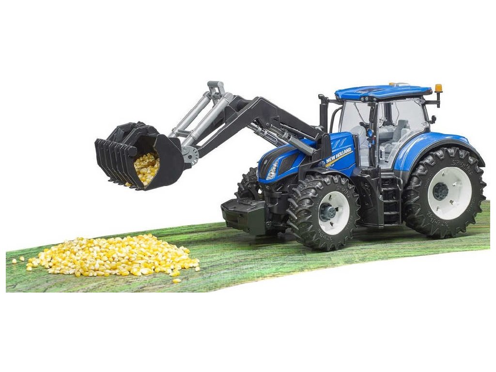 BRUDER 3121 - Nepostradatelným pomocníkem každého malého zemědělce je traktor. Co třeba New Holland? Traktor New Holland T7.315 s čelním nakladačem je samozřejmě vybaven spoustou zajímavých funkčních prvků, např. otevíracími dveřmi kabiny, otevíracím krytem motoru, řiditelnou přední nápravou a to i pomocí prodlouženého volantu a také funkčním čelním nakladačem. Další zajímavou funkcí jsou sundavací kola.