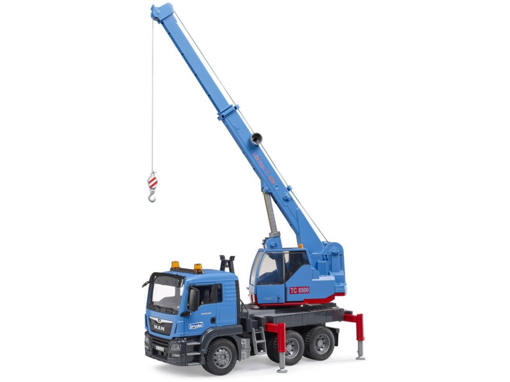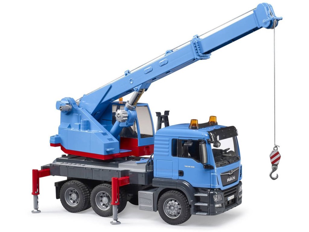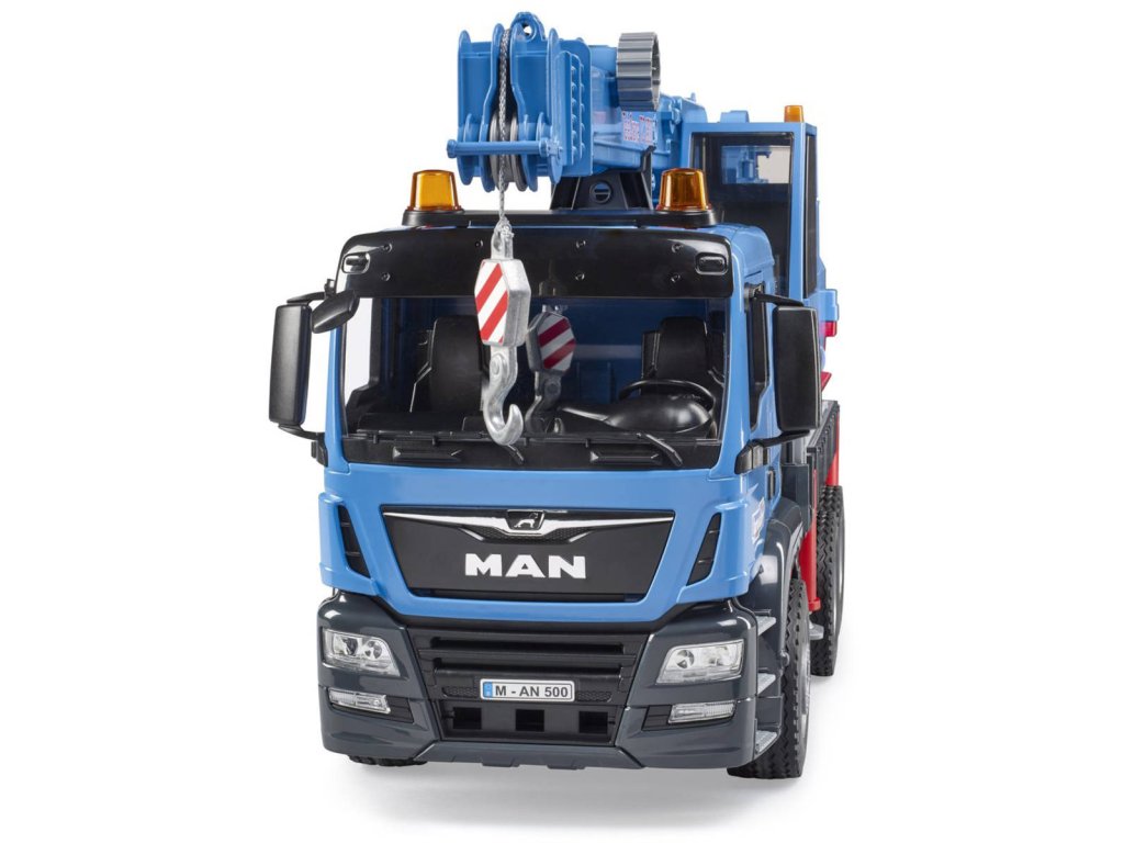 BRUDER 03771 MAN TGS Autojeřáb modrý model 1:16 na baterie Světlo Zvuk