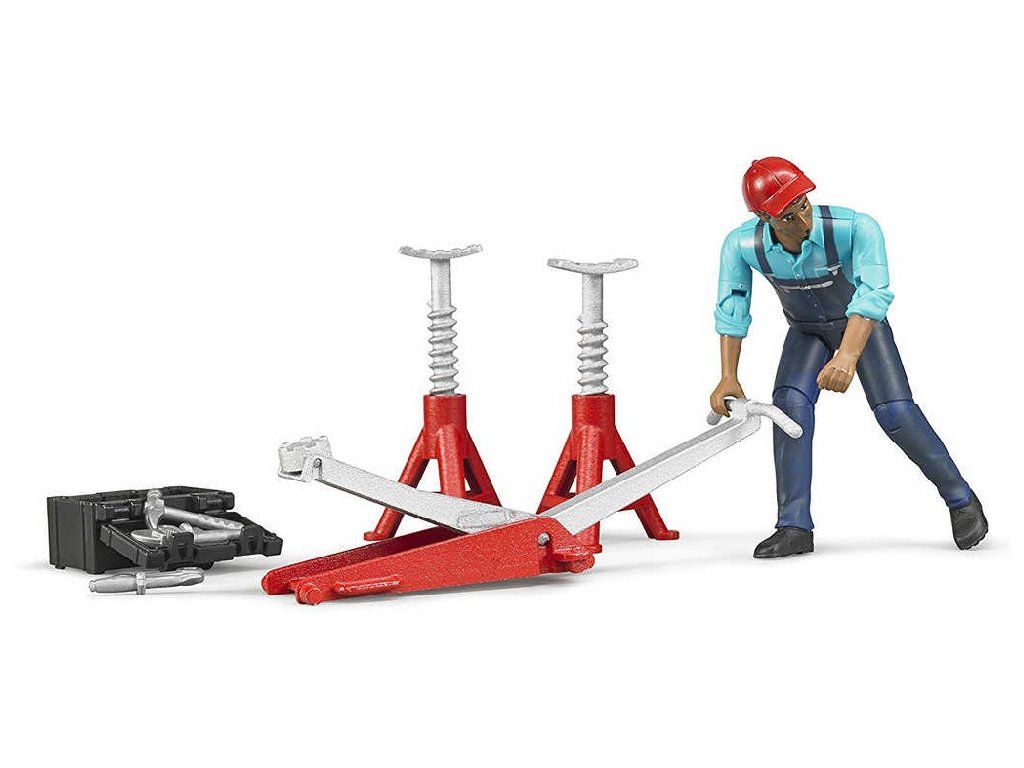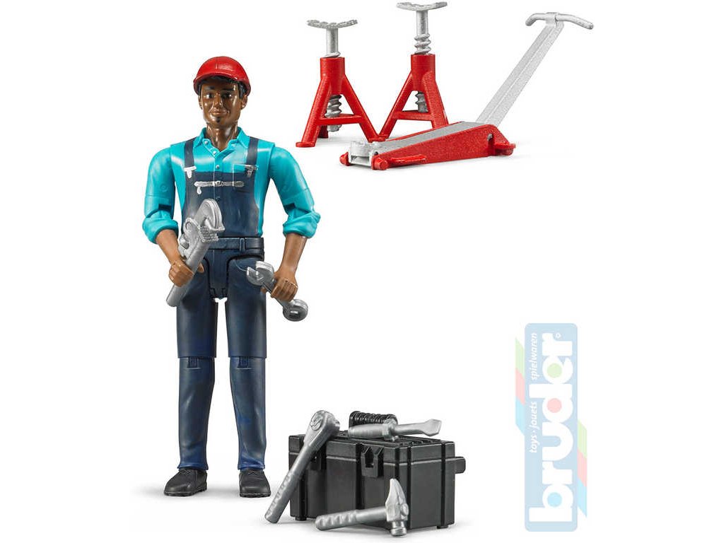 BRUDER 62100 Figurka mechanik 11cm tmavá pleť set s doplňky plast