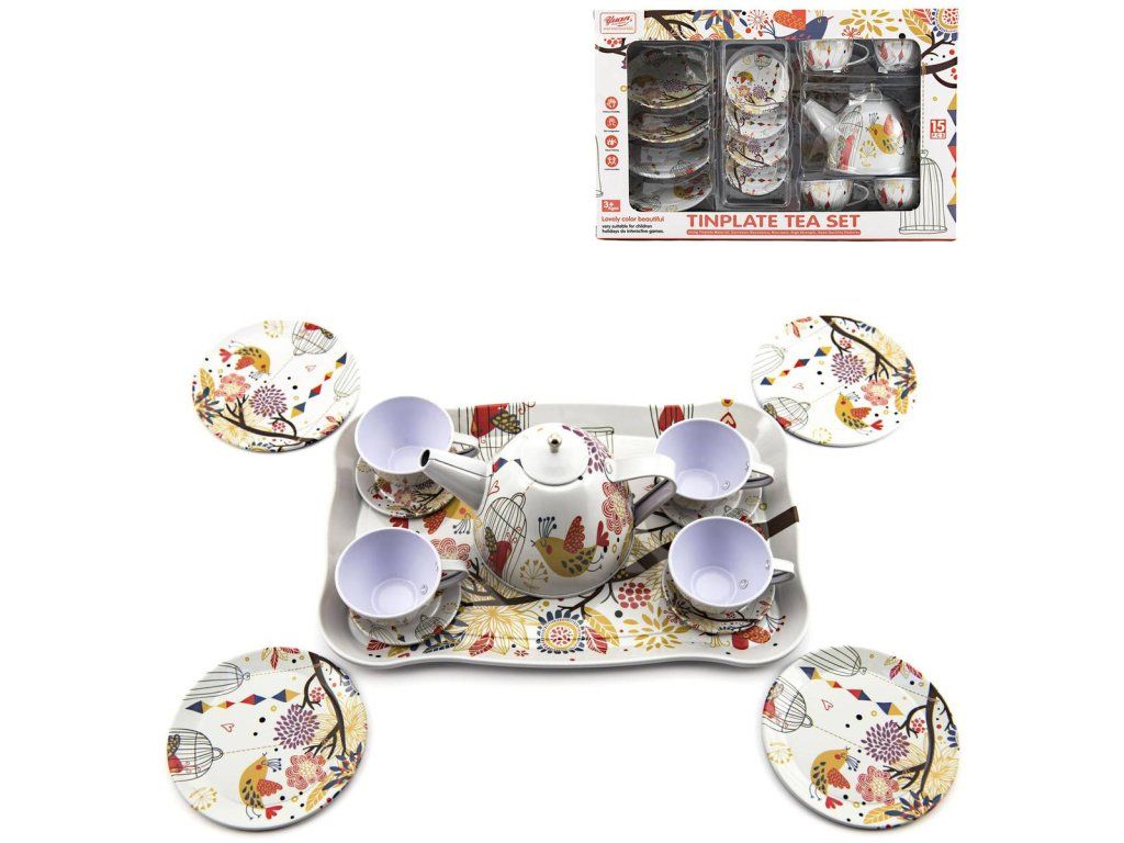 Čajový servis plechový dětské nádobíčko set 15ks v krabici