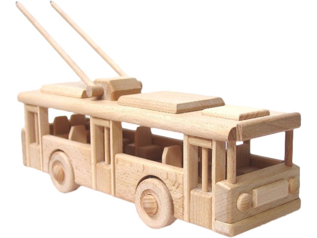 Dřevěný model trolejbusu, pro všechny milovníky městské hromadné dopravy. Vyrobeno z kvalitního tvrdého bukového dřeva, tudíž vydrží. Nádherně propracovány detaily. Lze lehce spravit a přilepit lepidlem, když se stane karambol. A hlavně - dítě se o dřevěnou hračku nepořeže.