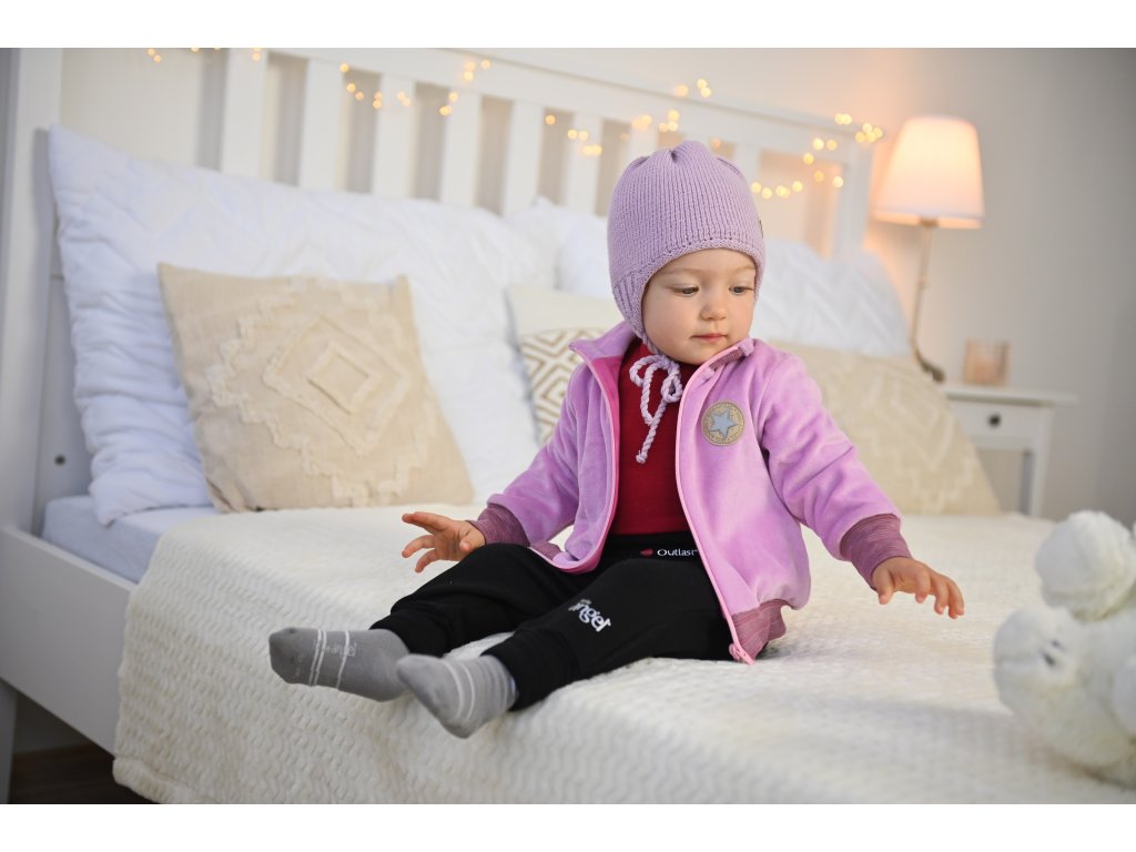 - smykový – používáme ho do kolekce podzim/zima, je teplejší, z rubu má smyčky a slovo smyk najdete v názvu výrobku. Tento materiál moc nedoporučujeme pro ekzematickou pokožku, protože smyčky mohou o stroupky zavadit a pokožku spíše rozdráždit. Ovšem ze zkušenosti víme, že maminky pořizují i tyto výrobky a dávají je dětem jednoduše naruby.