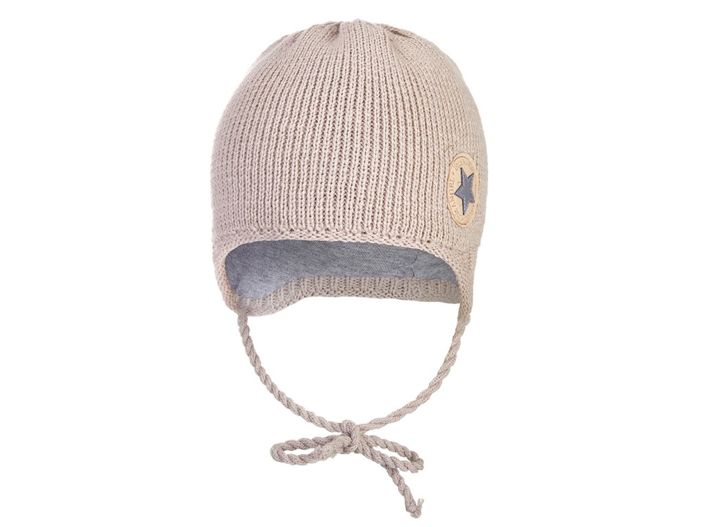 - Pletená čepice podšitá, se zavazováním pod bradičkou
