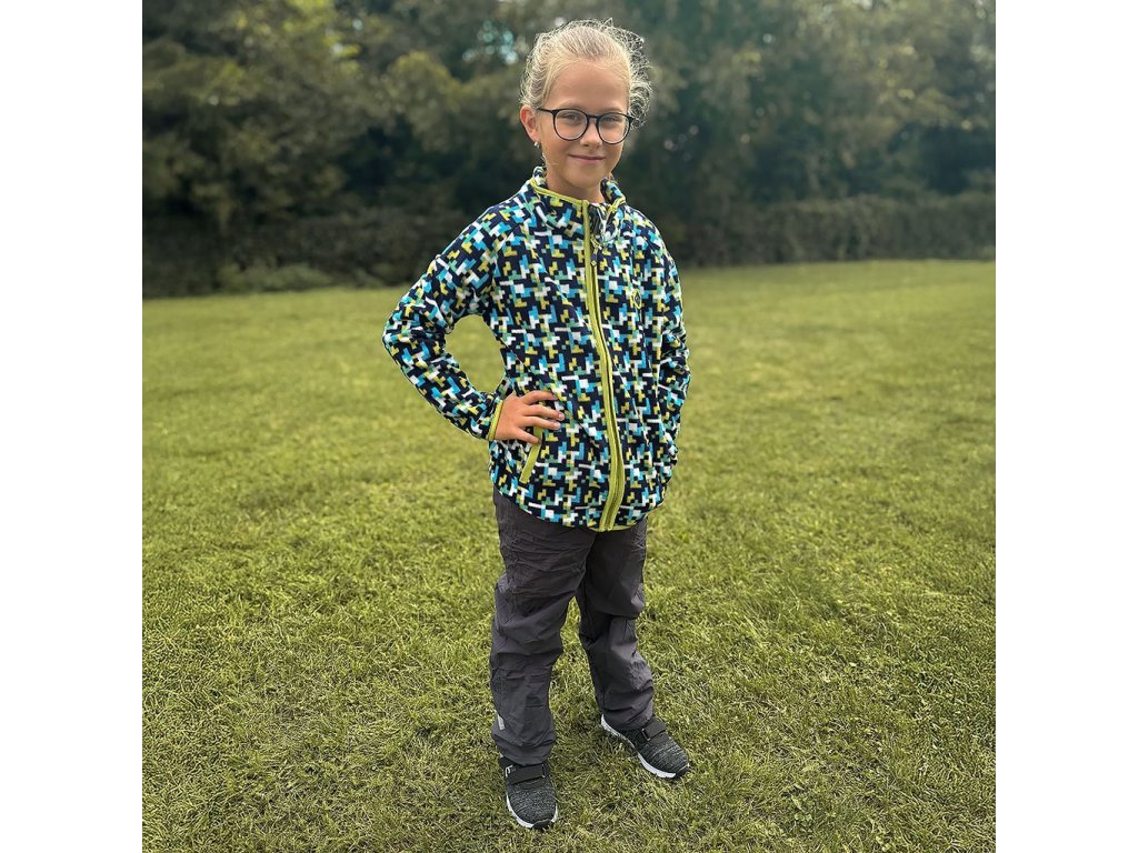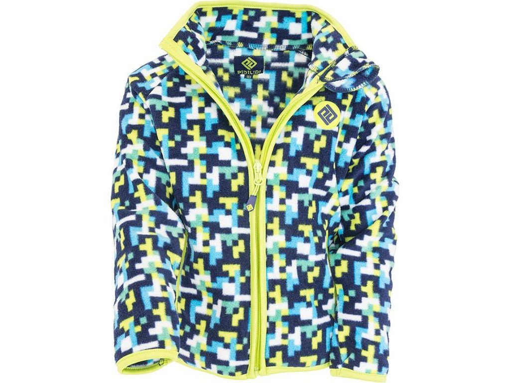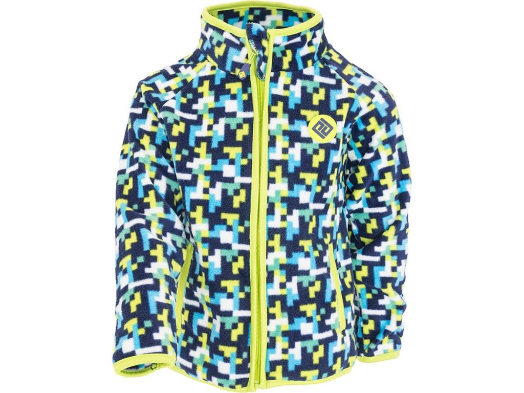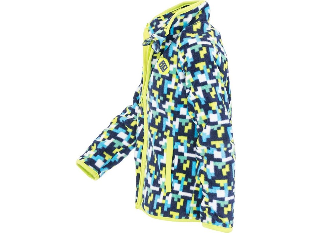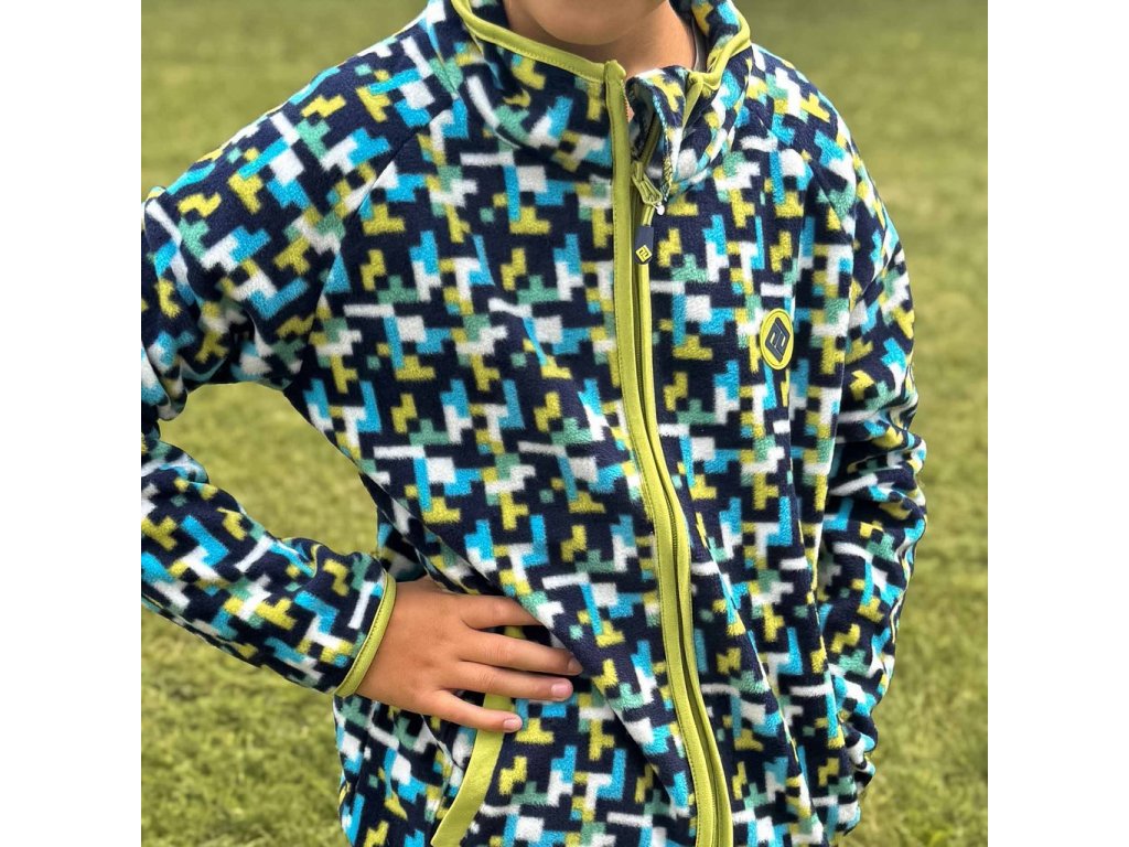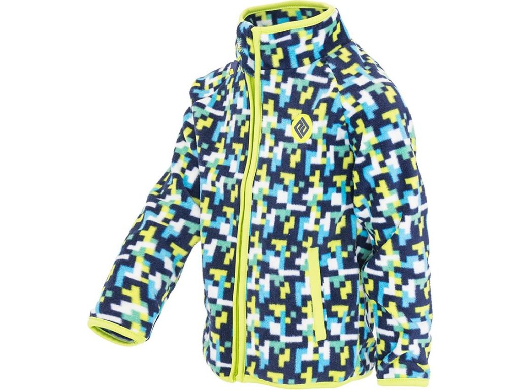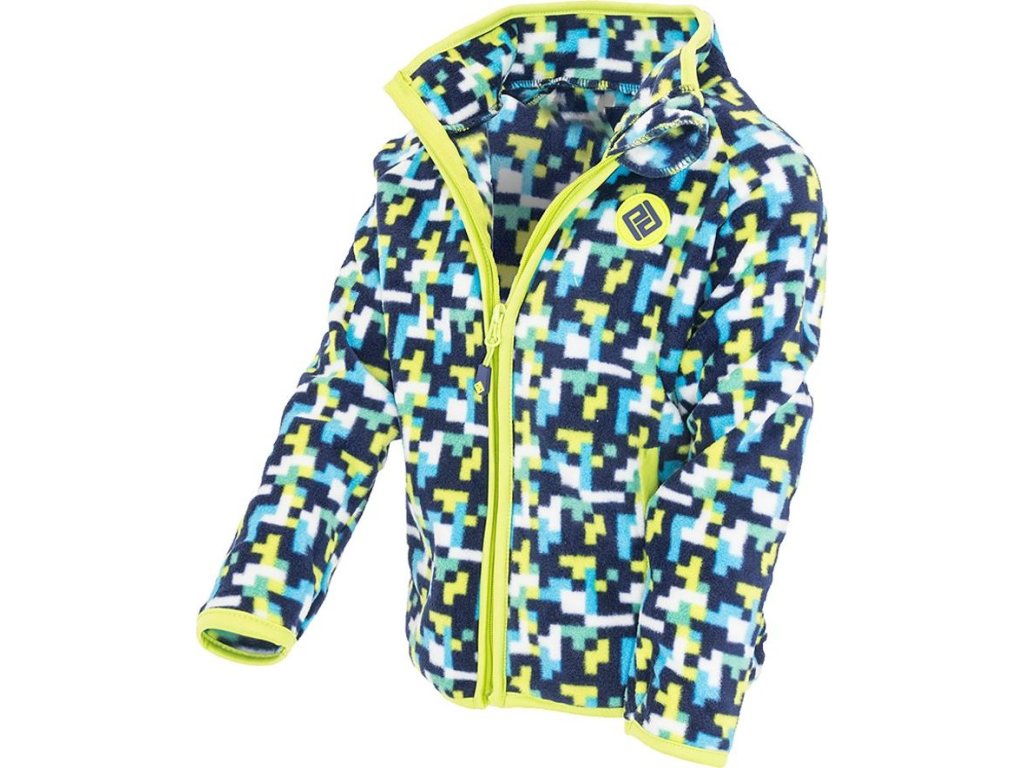 Chlapecká propínací fleezová mikina. Stojací límec, dvě kapsy, barevné kontrastní lemy.