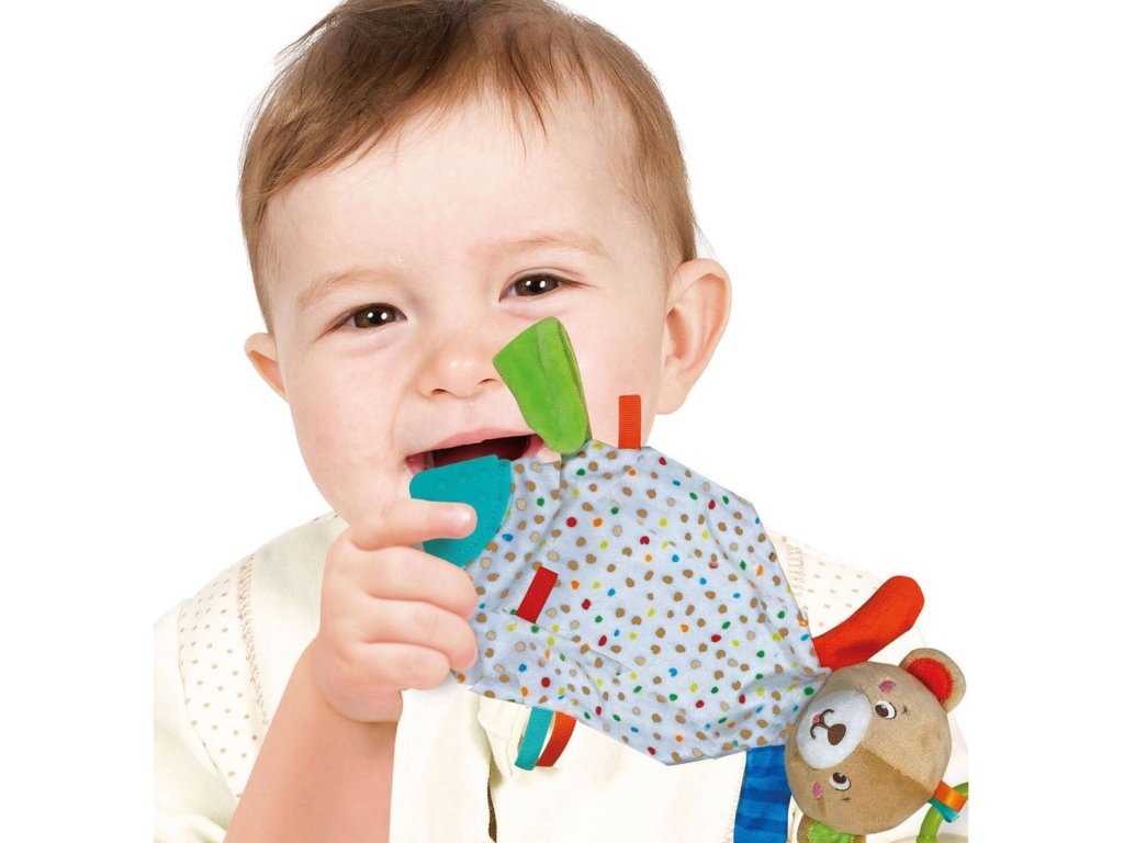 CLEMENTONI Baby dečka medvídek mazlící s úchytem a kousátky pro miminko PLYŠ