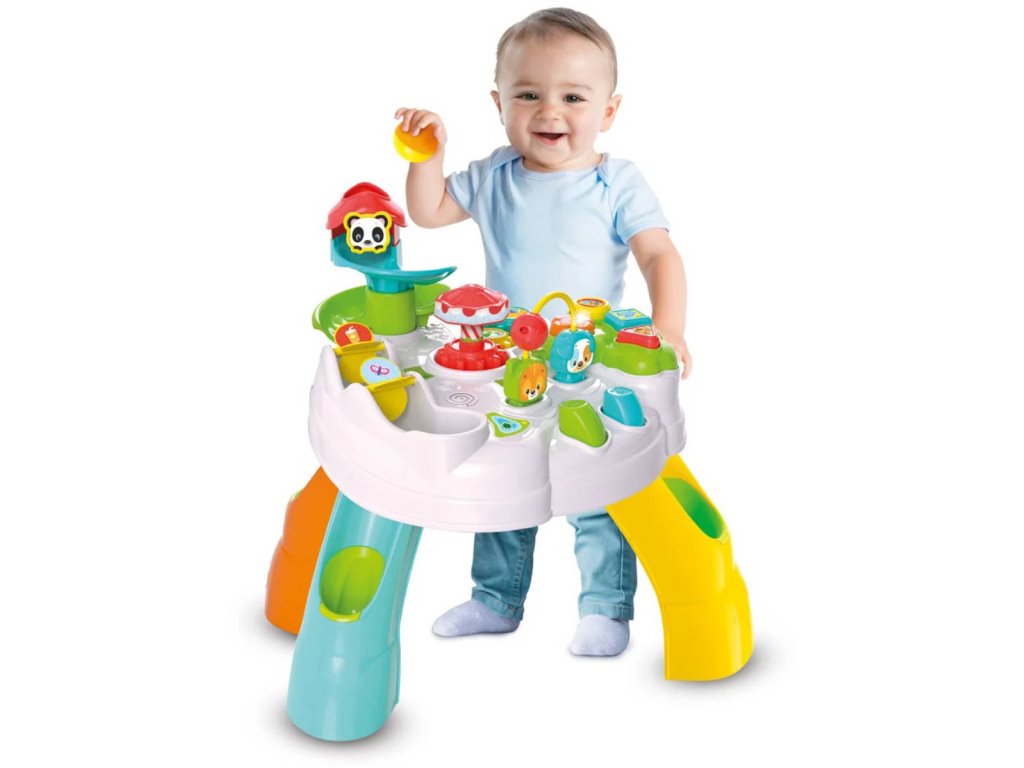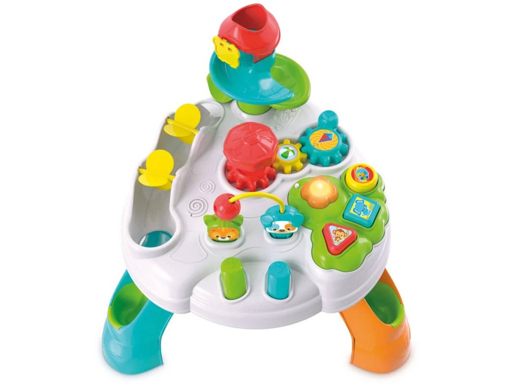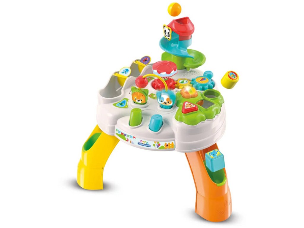 CLEMENTONI Clemmy baby - Veselý hrací baby stolek s aktivitami, s kostkami a zvířátky, pro nejmenší. Součástí kuličková dráha a vkládačka. Hračka na baterie, se světlem a zvukem.