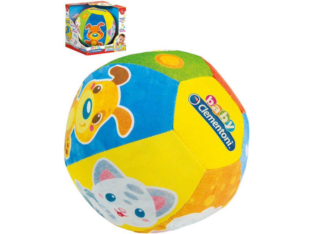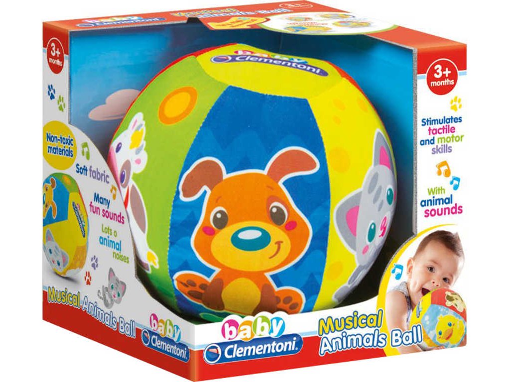 Hudební balón Clementoni Baby je vyroben z měkkého materiálu s obrázky zvířat. Balónek při hře vydává různé zvířecí zvuky. Měkká tkanina s různou texturou a barevností podporuje vývoj