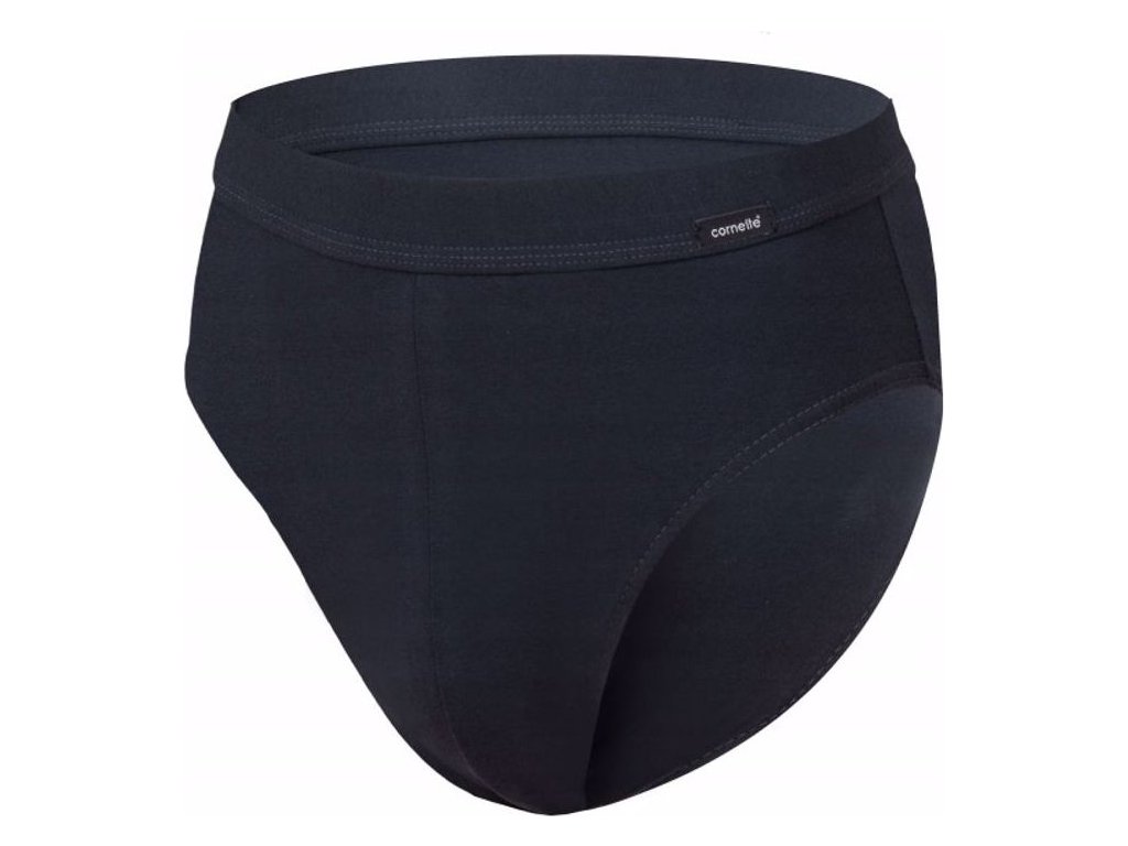 Pánské jednobarevné slipy v pase do obšité gumy a logem výrobce v přední části. Velice oblíbený model zejména pro svůj střih. Slipy jsou baleny v krabičce.