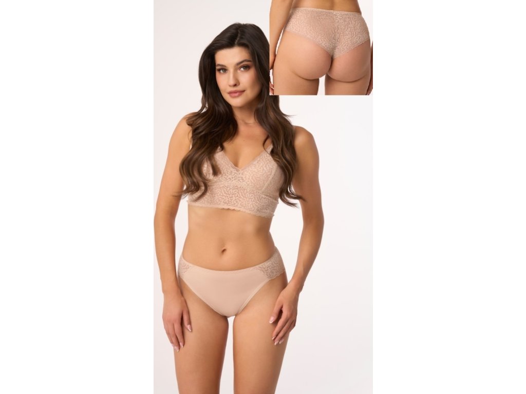 Dámské kalhotky jsou vyrobené z velmi kvalitní a jemné bavlny. Zadní díl a boky modelu je vyrobený z efektní krajky s květinovým motivem. Baleno v krabičce.