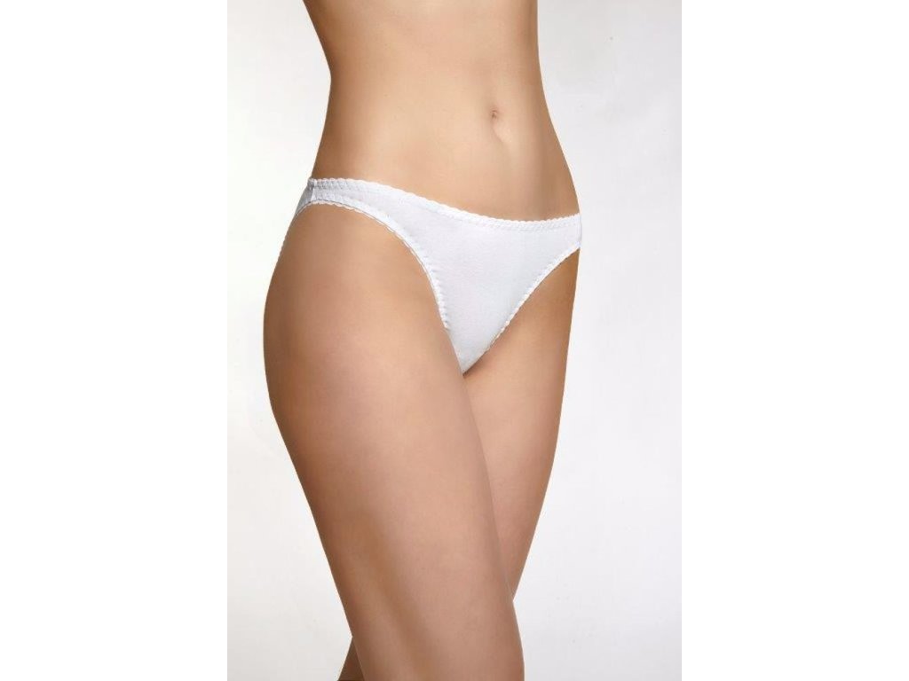 Dámské jednoduché kalhotky z bavlny a elastanu (95/5) s vyšším vykrojením. Baleny v sáčku po 1 kuse.