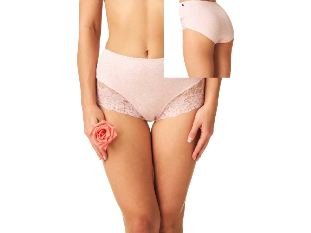 Dámské kalhotky s vyšším a plným střihem, zdobené na předním díle krajkou. Vyrobené z vysoce kvalitní bavlny. Baleno po dvou kusech v krabičce.
