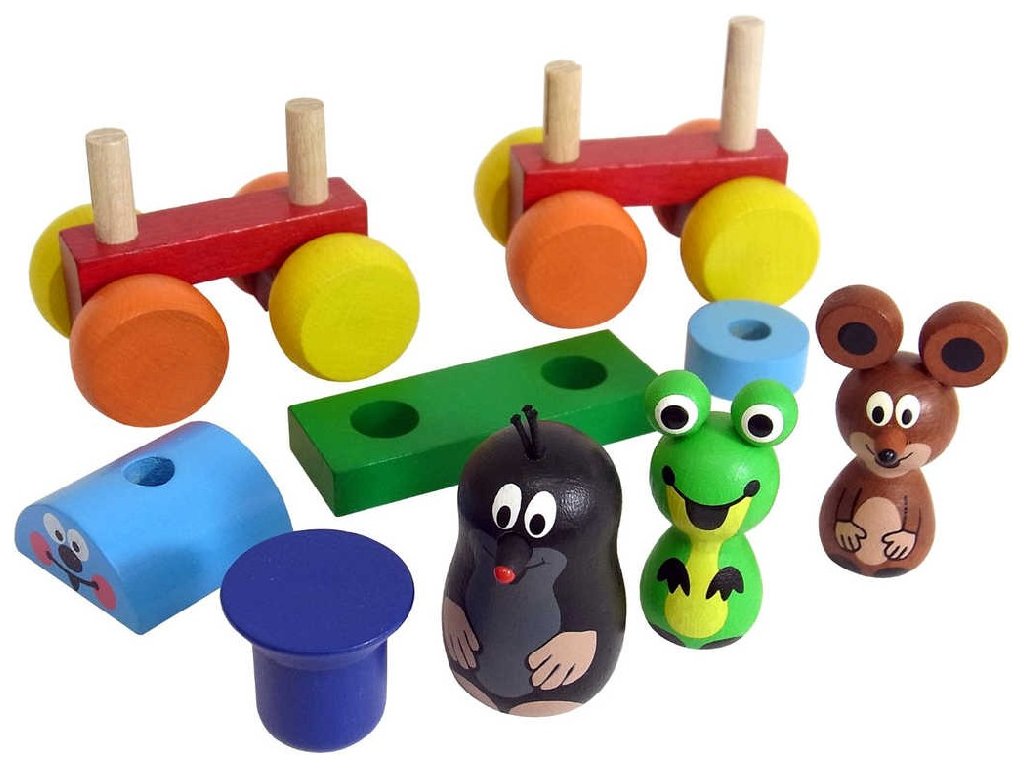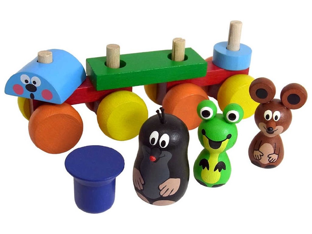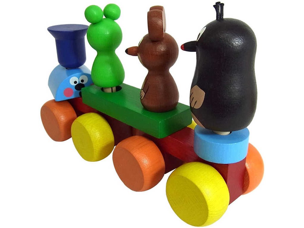Dřevěný vláček s postavičkami Krtečka a jeho kamarádů, kteří se dají z vláčku vysadit a ten pak dále rozložit na další dílky a zase poskládat dle vlastní představivosti. Hračka je v barevné provedení.