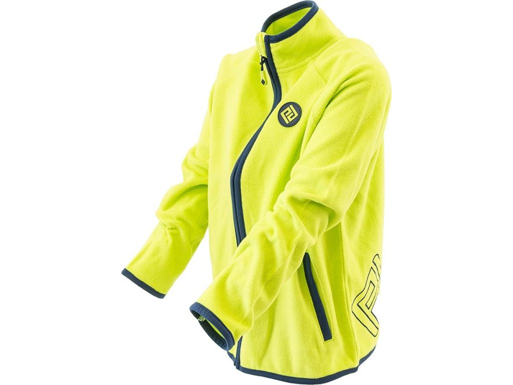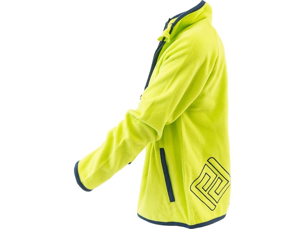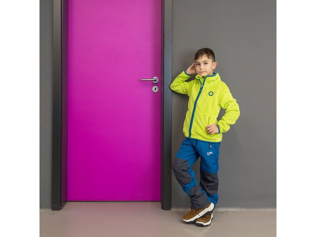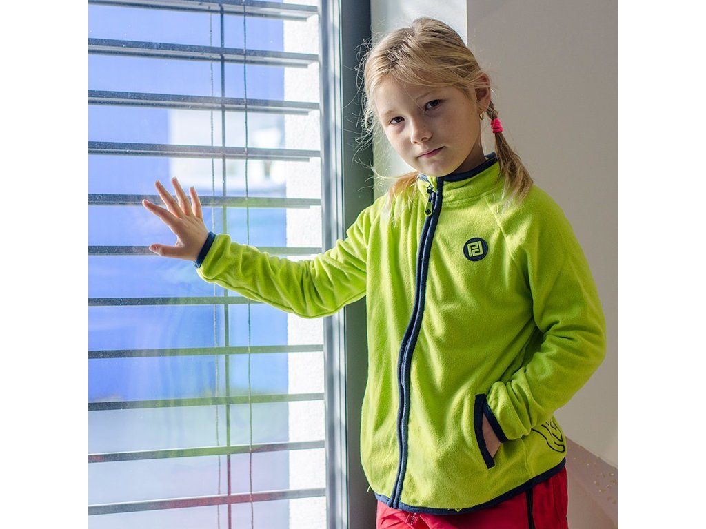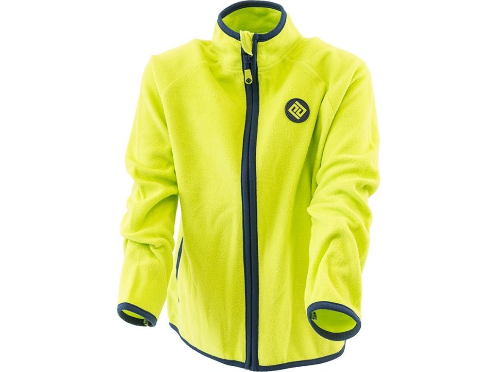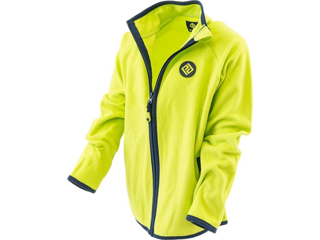Dětská propínací fleezová mikina. Stojací límec, dvě kapsy, barevné kontrastní lemy.