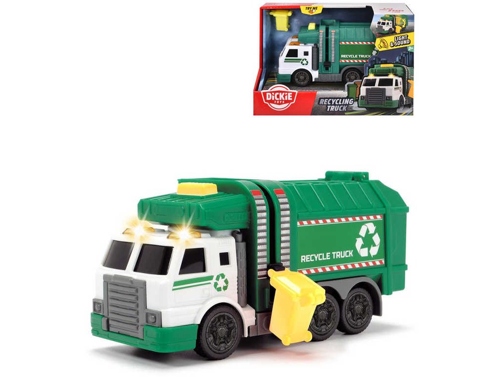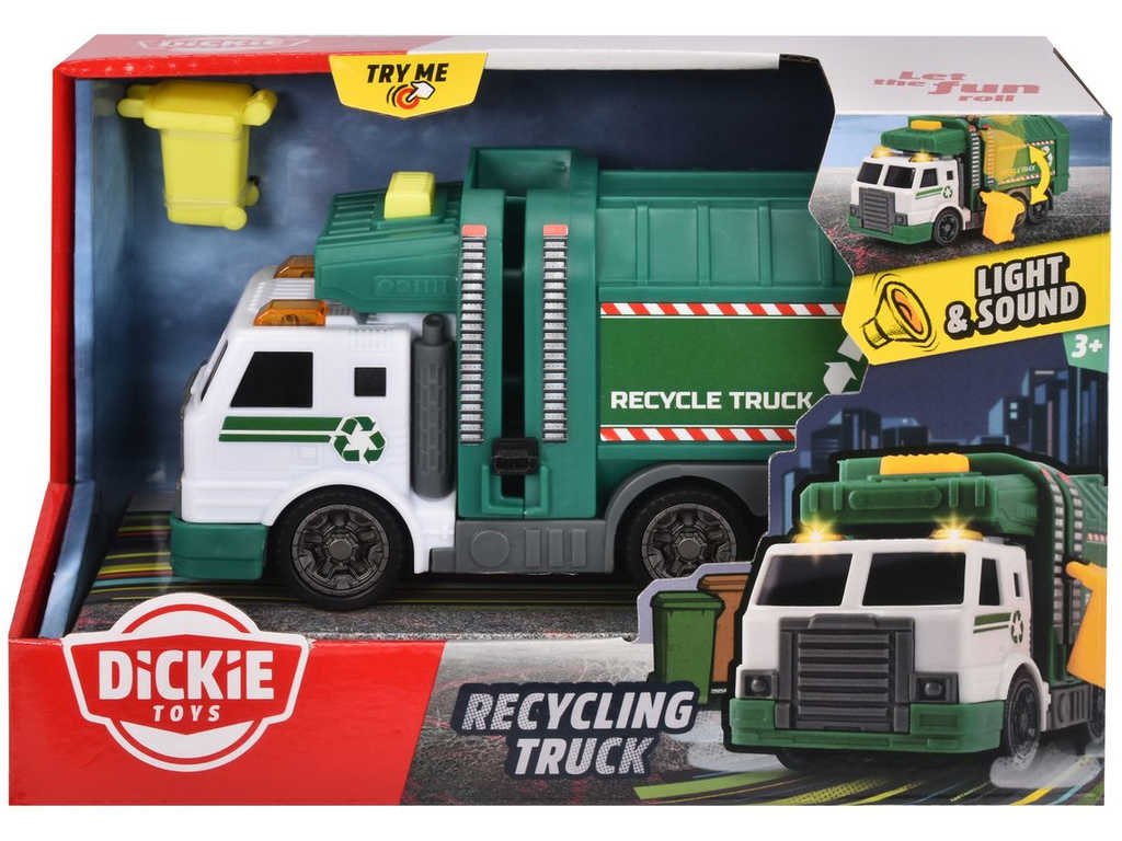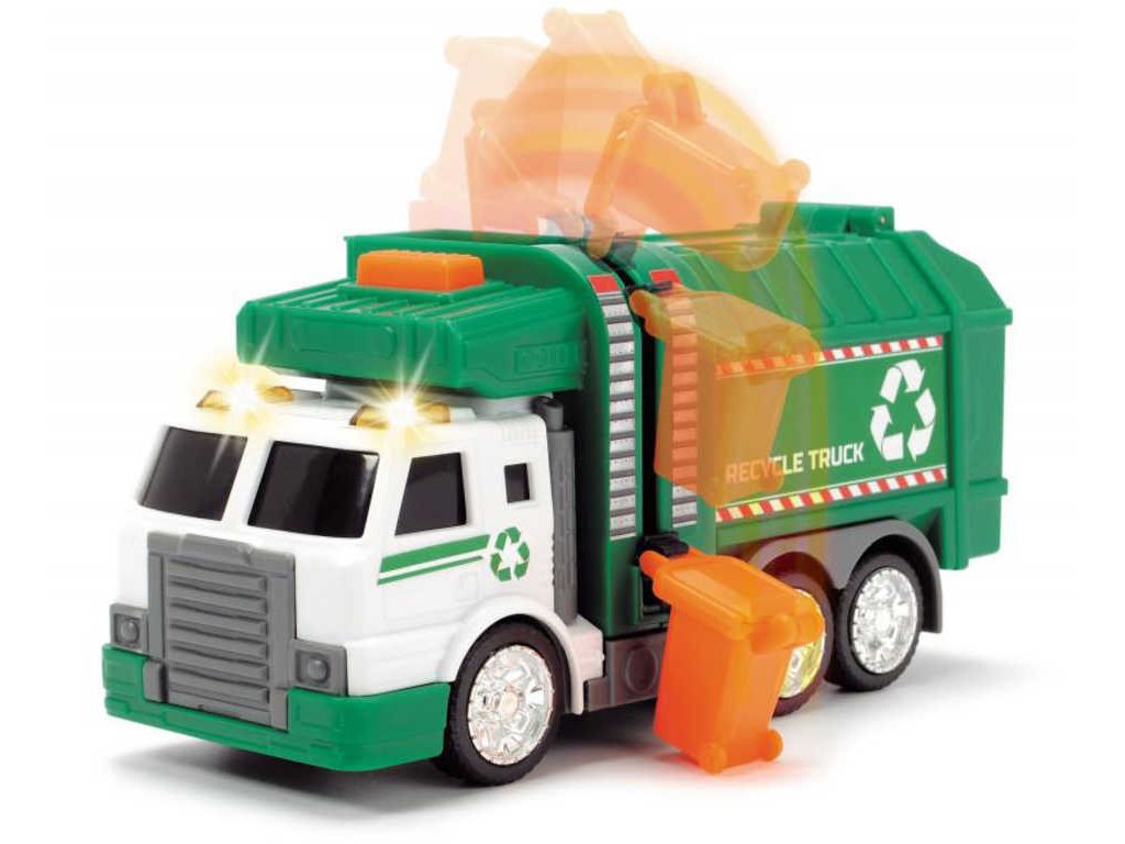 Plastové auto popeláři na volnoběh, světelný a zvukový efekt, pohyblivé části, otevírací zadní část, popelnice součástí. Hračka na baterie, se světlem a zvukem.