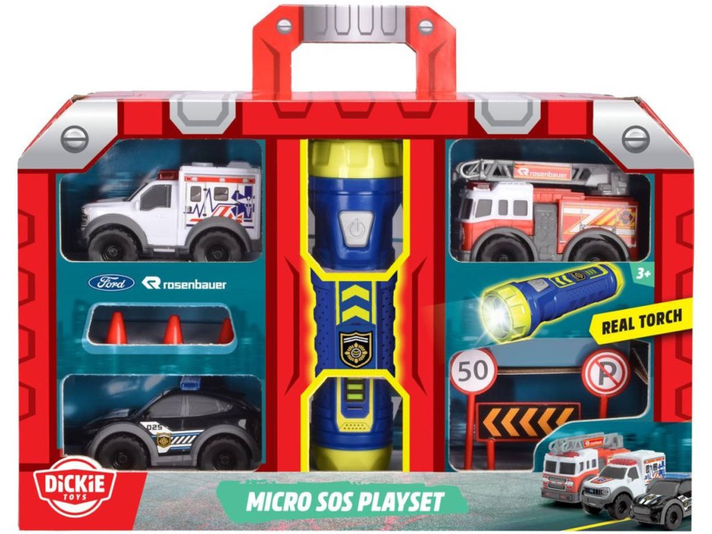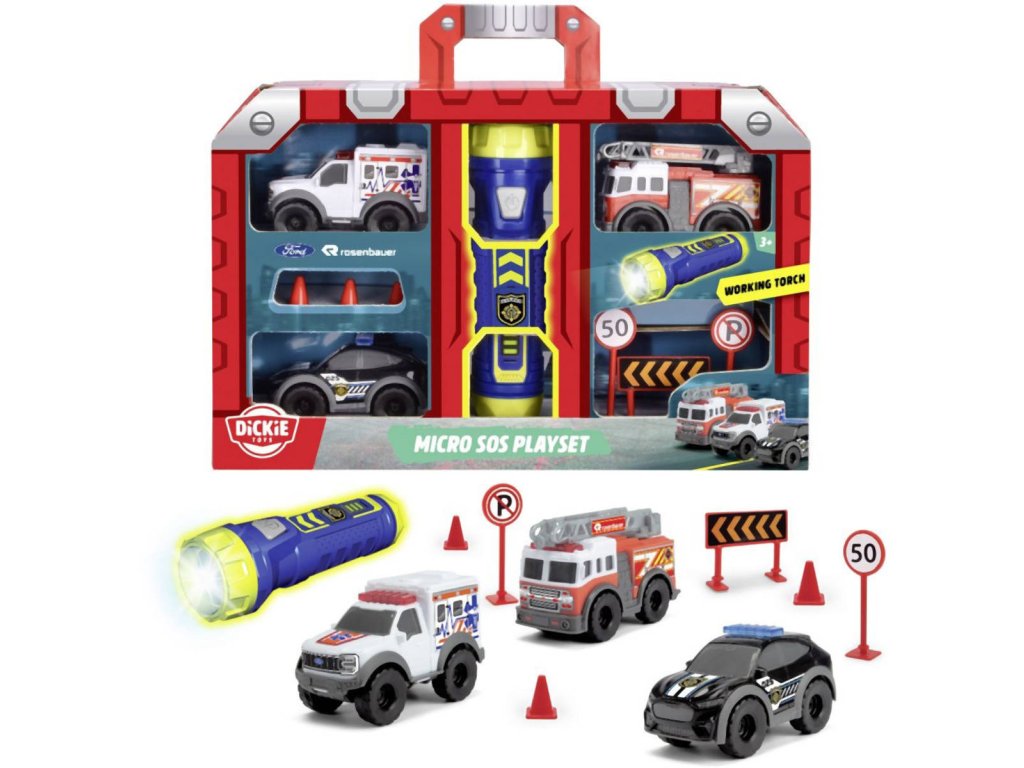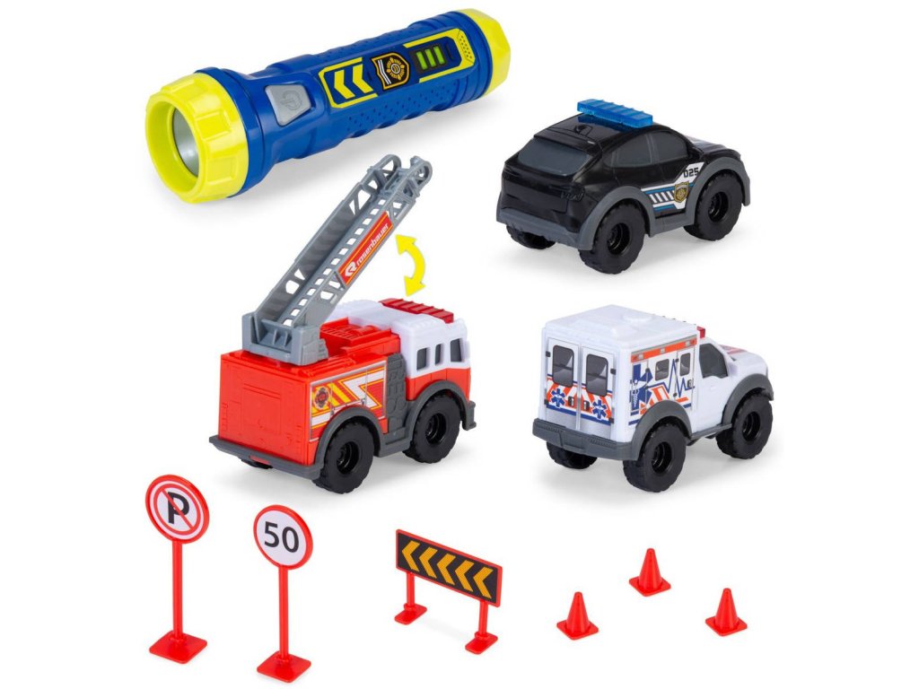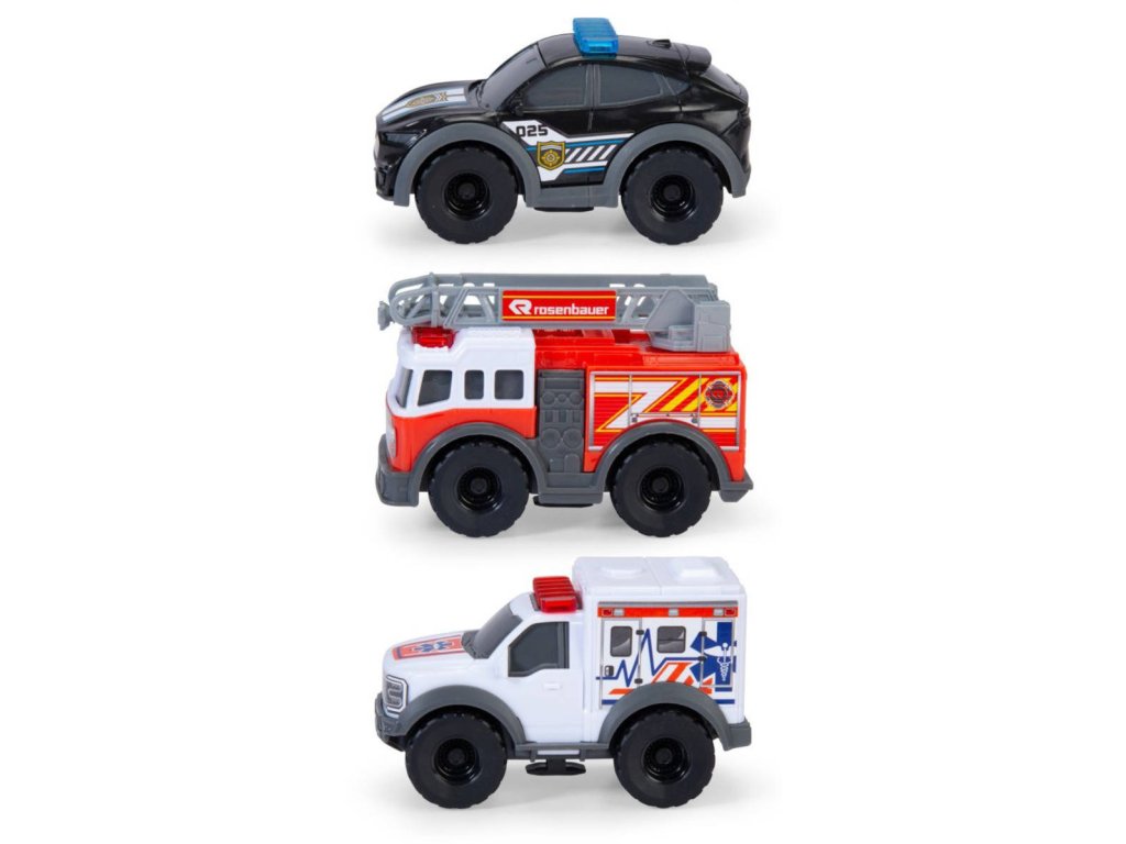 DICKIE Mikro záchranářská vozidla 3ks s baterkou a doplňky na baterie Světlo