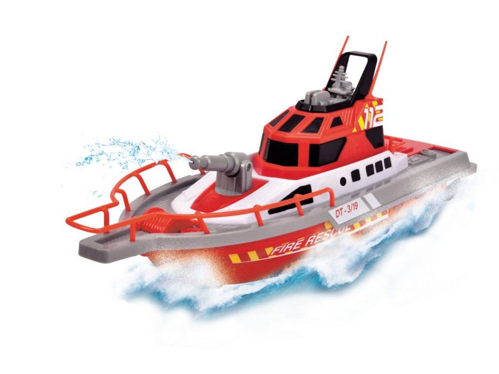 Záchranářská loď s funkčním vodním stříkacím dělem. Loď je vybavena voděodolnou elektronikou, součástí je nabíjecí USB kabel.