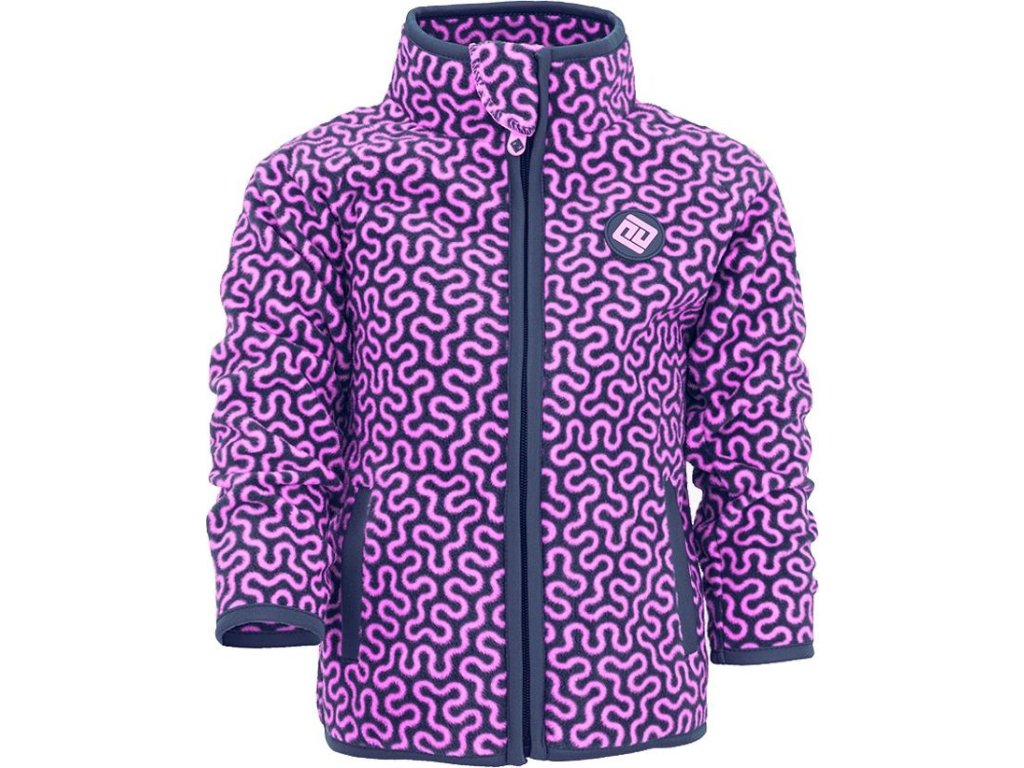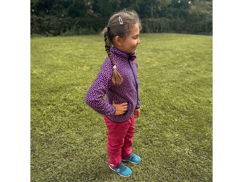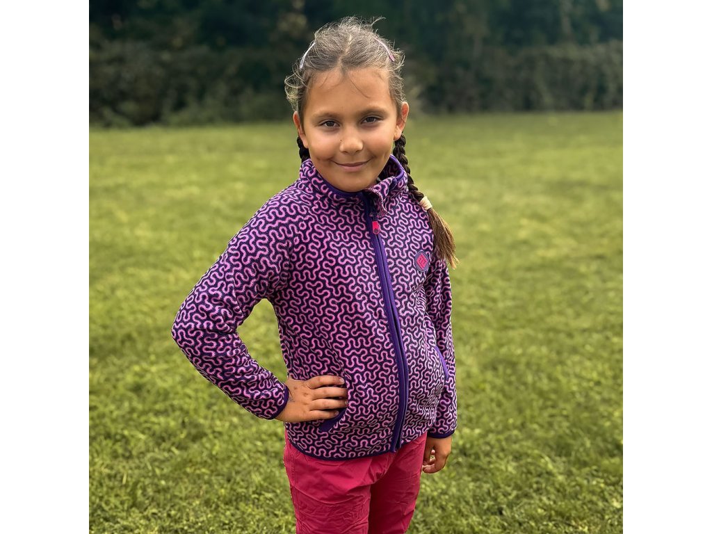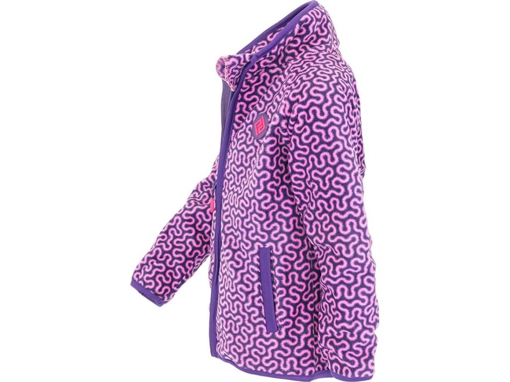 Dívčí propínací fleezová mikina. Stojací límec, dvě kapsy, barevné kontrastní lemy.