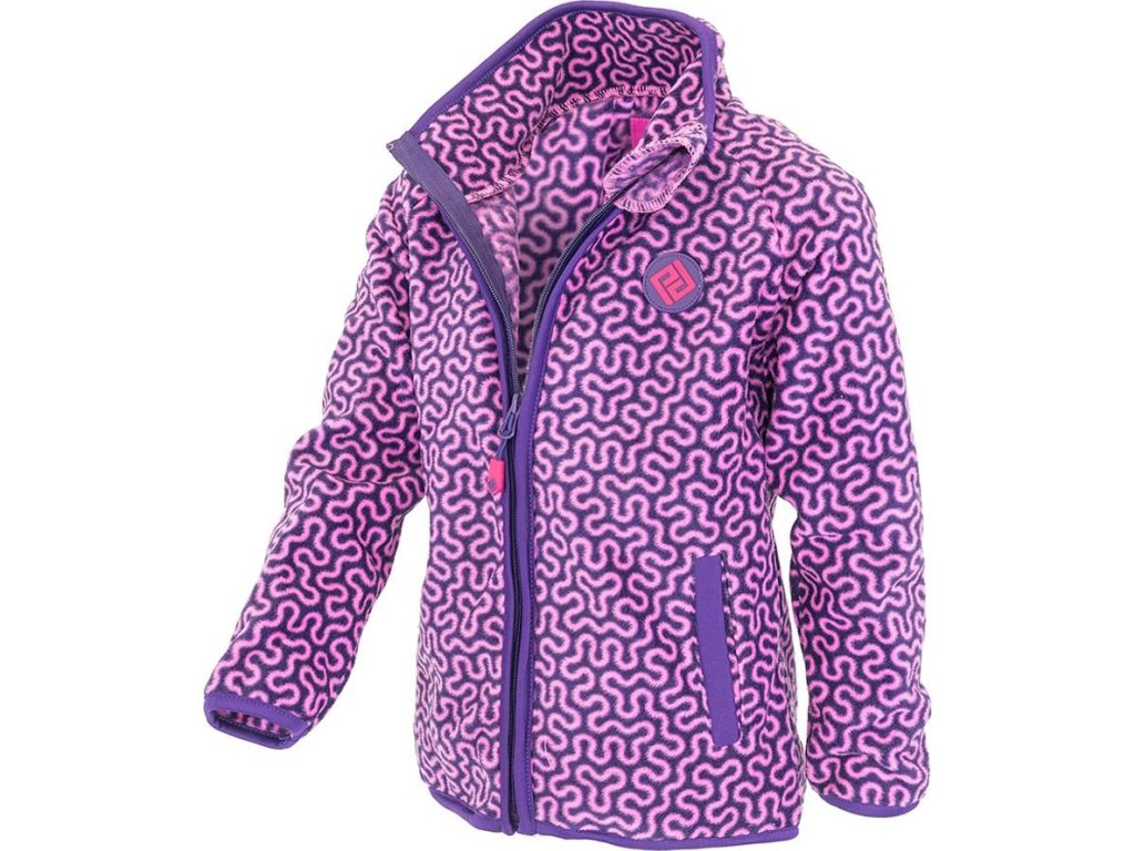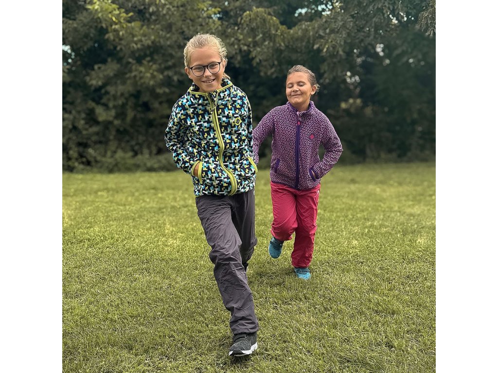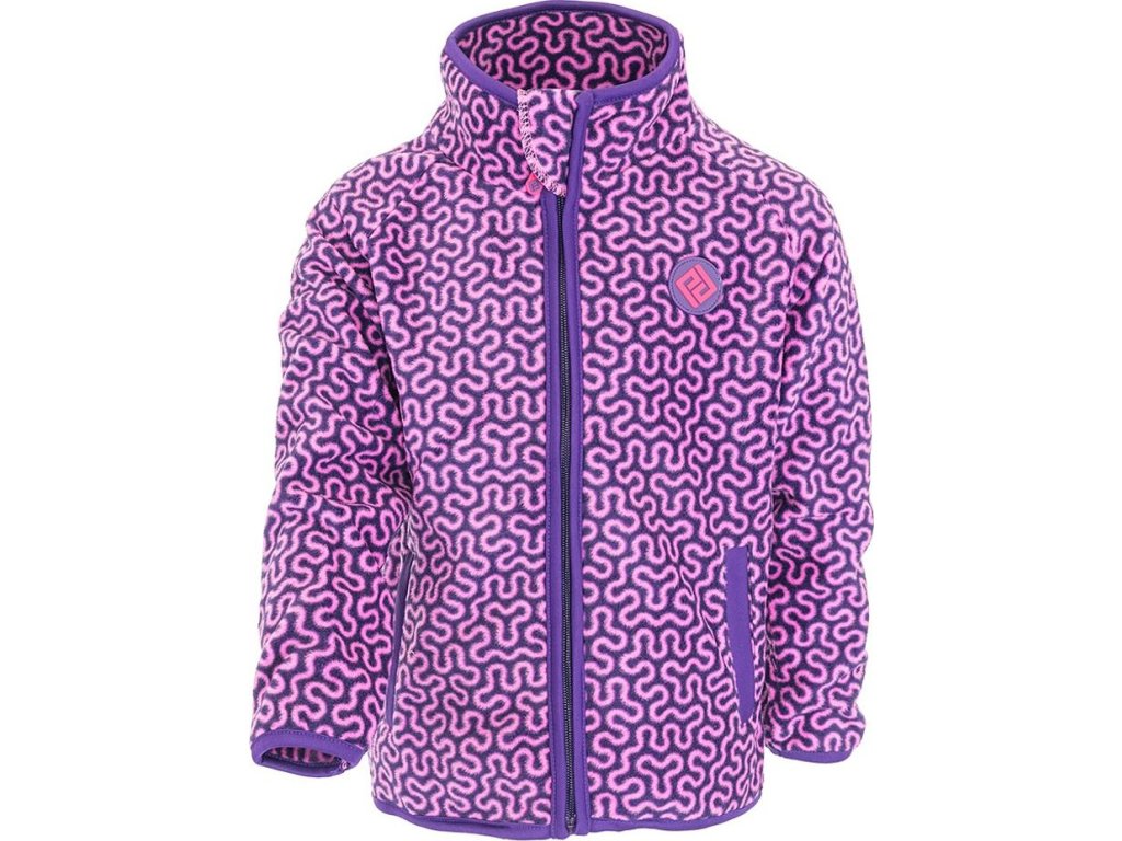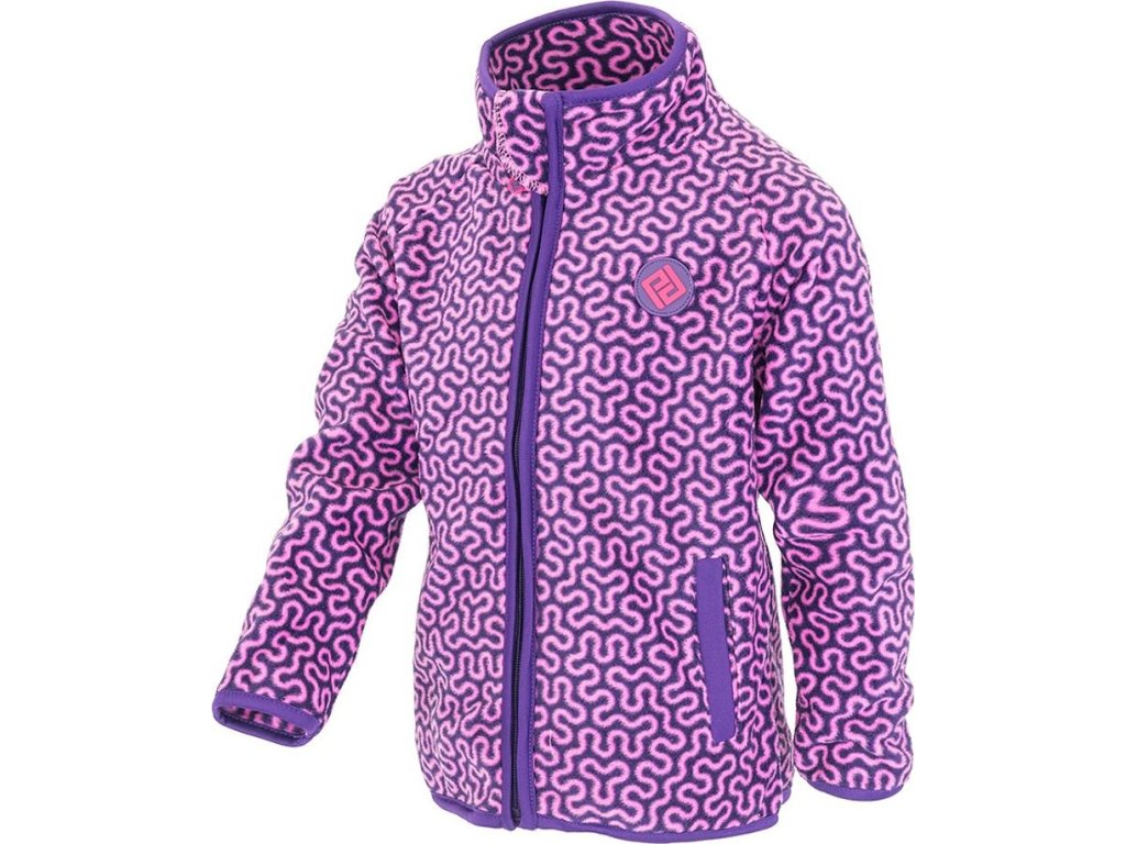 Dívčí propínací fleezová mikina. Stojací límec, dvě kapsy, barevné kontrastní lemy.