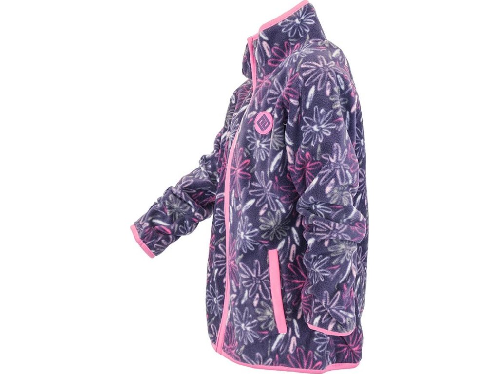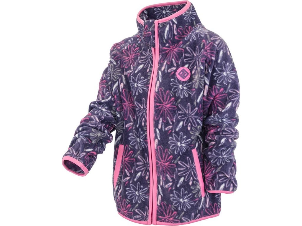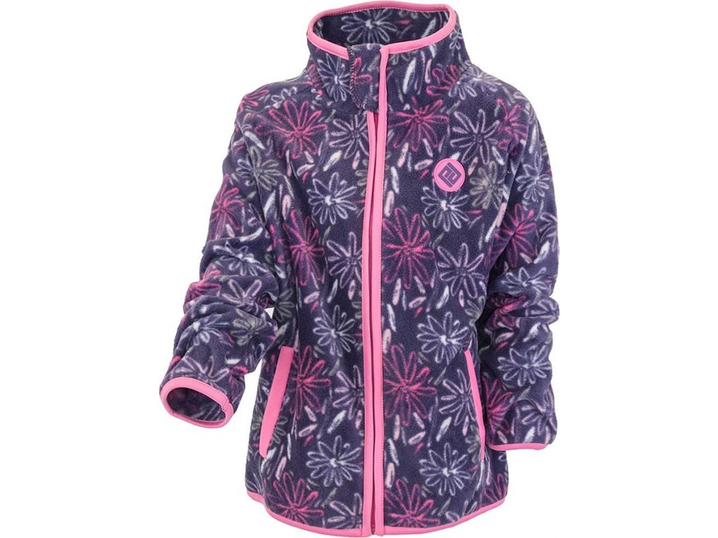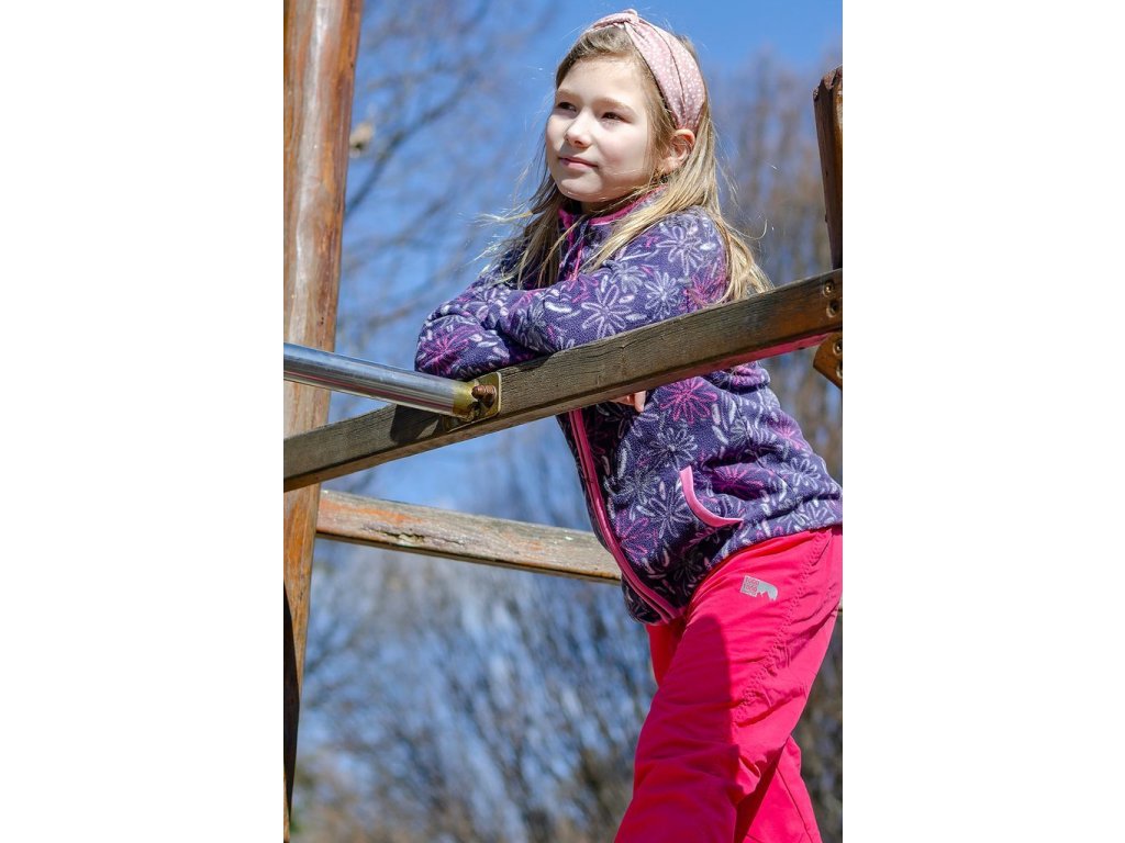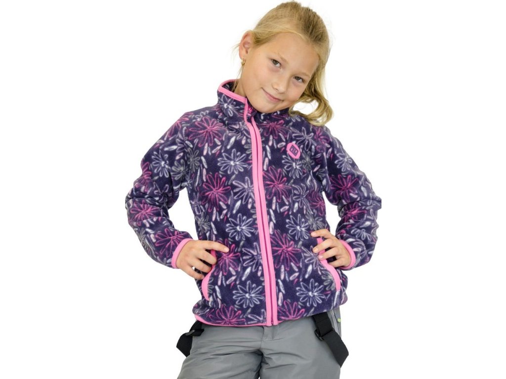 Dívčí propínací fleezová mikina. Stojací límec, dvě kapsy, barevné kontrastní lemy.