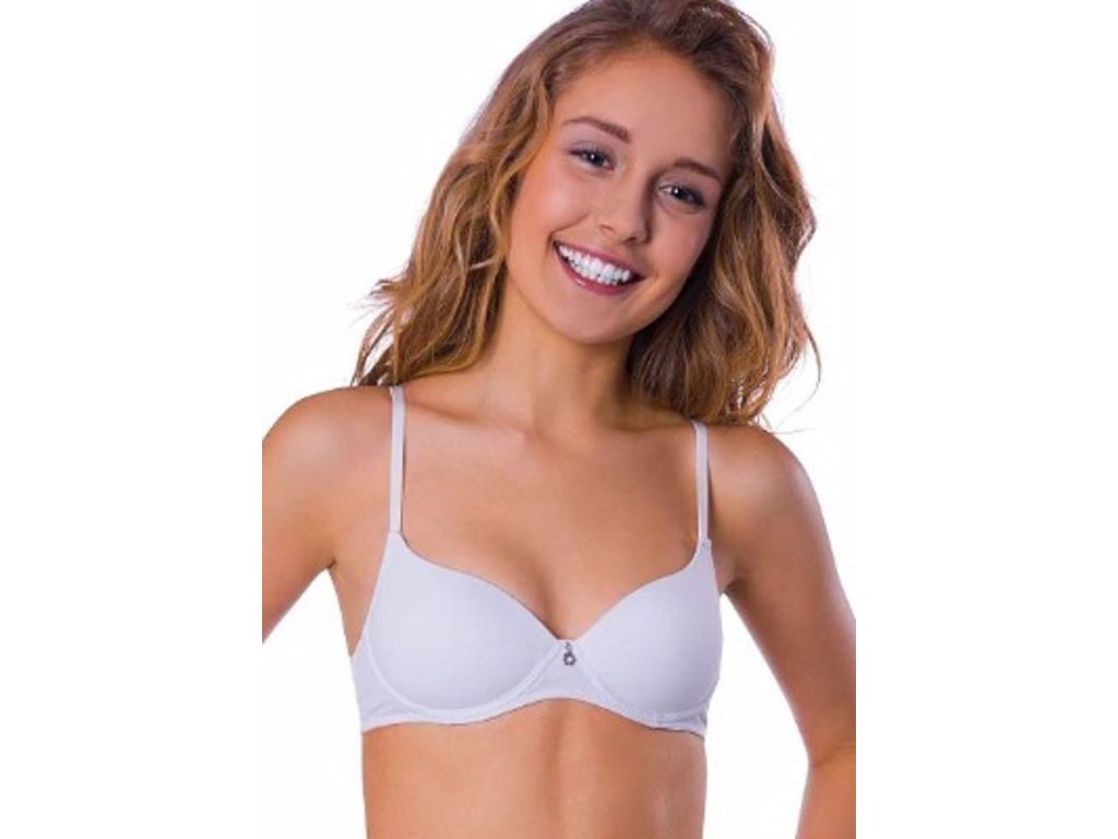 Dívčí bezešvá lehce vystužená jednobarevná podprsenka s ozdobou mezi košíčky. Balena v krabičce.