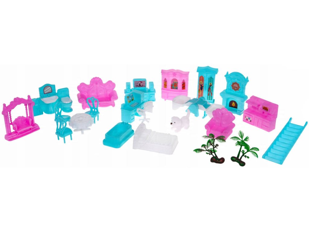 Domeček velký třípatrový vila pro panenky set s nábytkem a doplňky plast