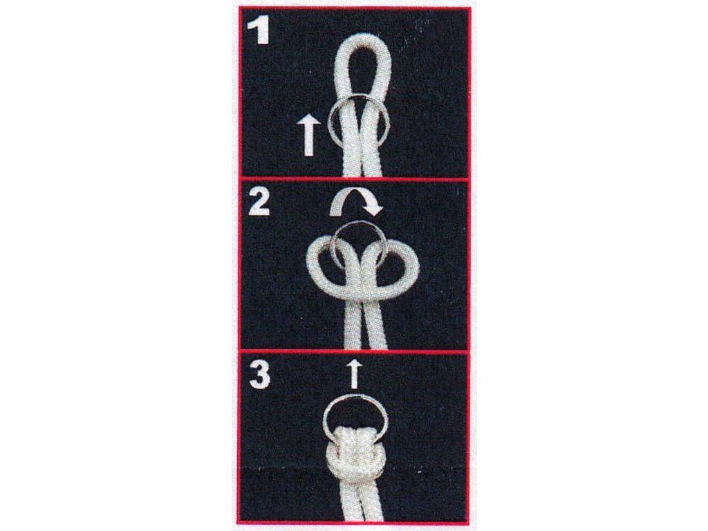 UPOZORNĚNÍ: pro správné uchycení houpačky na jejím horním konci je třeba provléct popruhy kovovým kroužkem (udělat uzel) - viz. obrázek (pokud takto není výrobek dodáván již od výrobce). Doporučený systém zavěšení houpaček viz. ilustrační foto.