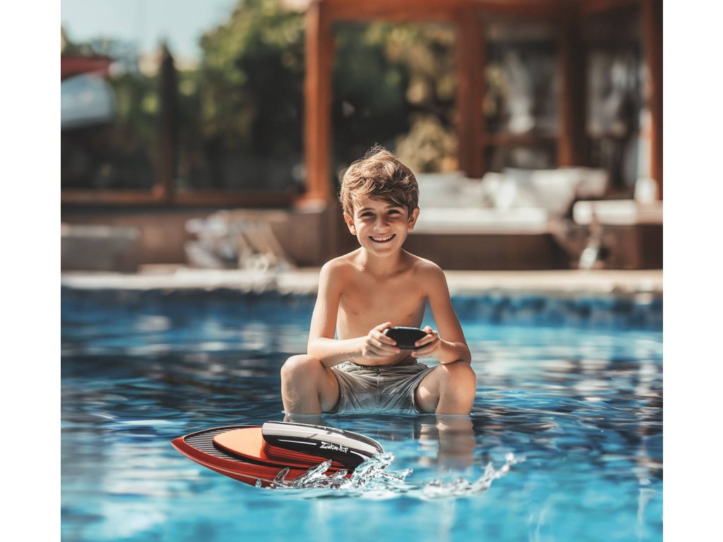 Moderní RC loď na dálkové ovládání, která jezdí všemi směry. Pomocí tlačítka pro zrychlení, dokáže na pár vteřin vyvinout větší rychlost. Senzor na vodu zaručí spuštění pouze při ponoření do vody. Dosah ovladače 10-15 m. Dobíjení na USB kabel. Doba dobíjení 25-30 minut. Doba jízdy 8-12 minut.