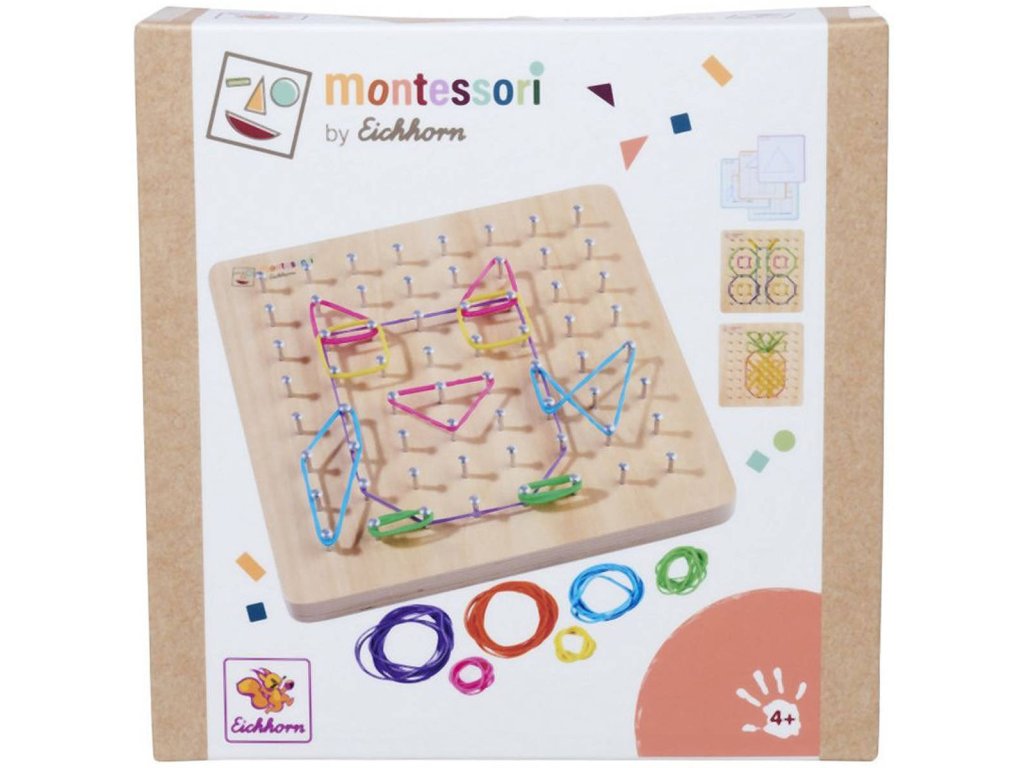 EICHHORN DŘEVO Montessori geometrická deska herní set s gumičkami