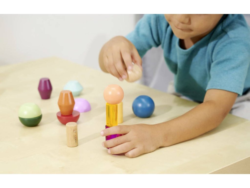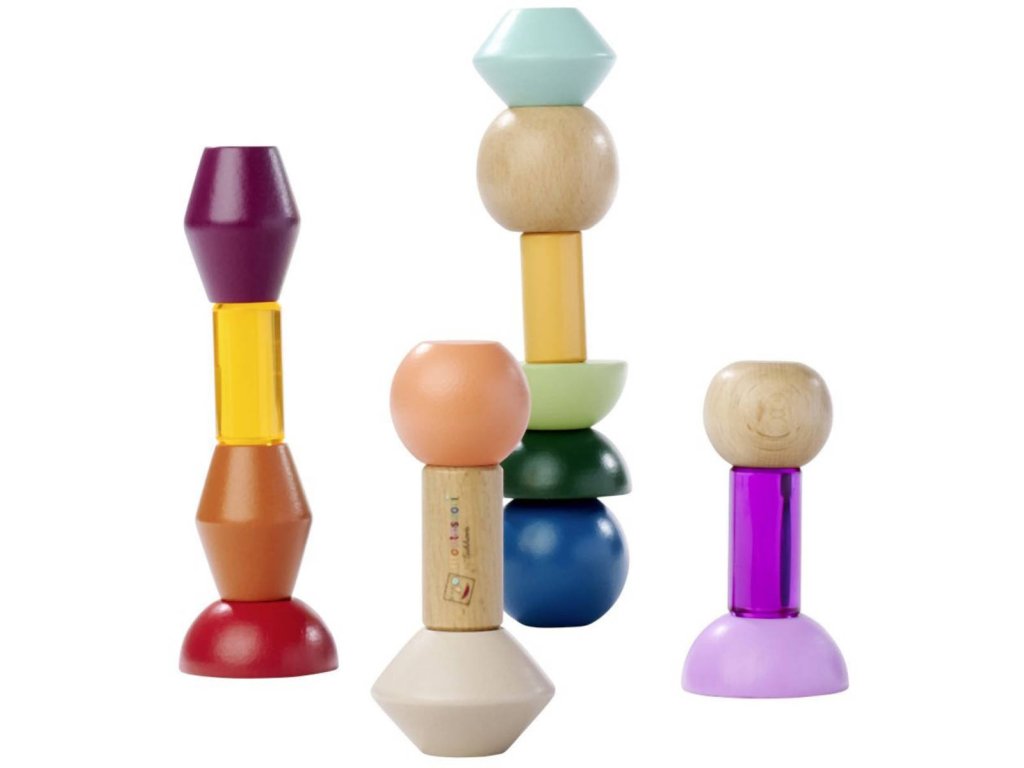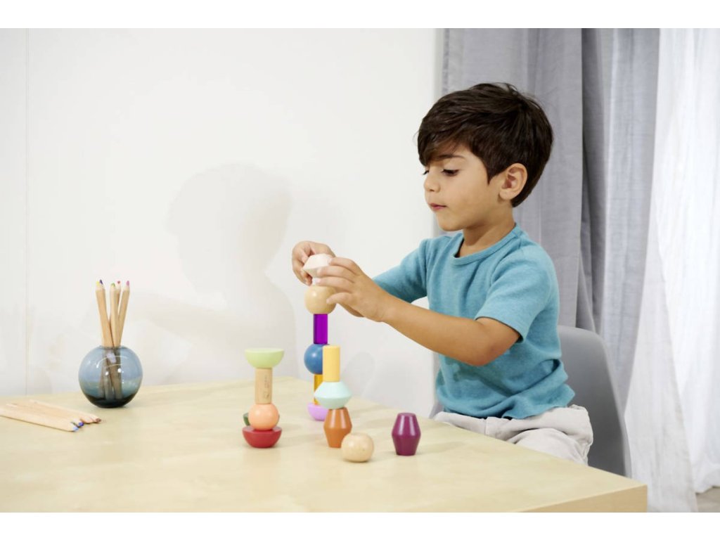 Tyto speciální geometrické stavebnice vyžadují trochu zručnosti. Ze 16 barevných stohovacích bloků můžete postavit vysoké věže a různé tvary. Vaše děti se naučí 5 nových geometrických tvarů a zamilují si dvě akrylové skleněné cihly. Bloky Montessori jsou vyrobeny ze 100% dřeva s certifikátem FSC a jsou vhodné pro děti od 3 let.