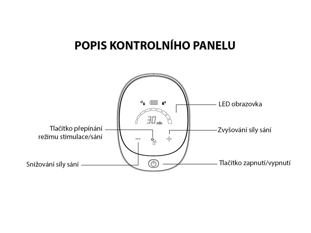 Odsávačka má dva režimy – stimulaci a sání. U každého režimu je možné regulovat sílu podtlaku v 9 stupních, aby si mohla každá maminka nastavit hodnotu, která jí vyhovuje a je pro ni příjemná.