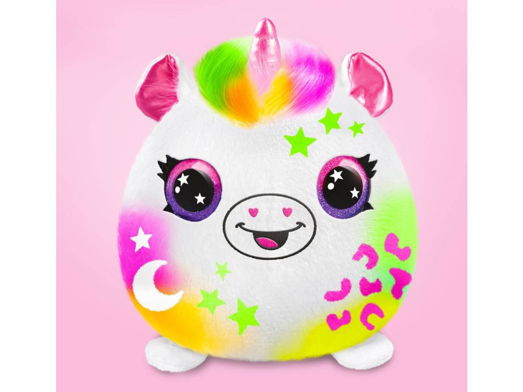Airbrush kreativní sada Neon skvěle zabaví každého. Uvnitř balení najdete jednoho plyšáka o velikosti 15cm, airbrush nástroj, 4 fixy a 70 šablon, se kterými můžete plyšáka vyzdobit podle své fantazie. Když vás design omrzí, stačí plyšáka vyprat dle návodu a po uschnutí můžete znovu tvořit. Série obsahuje 3 druhy plyšáků.