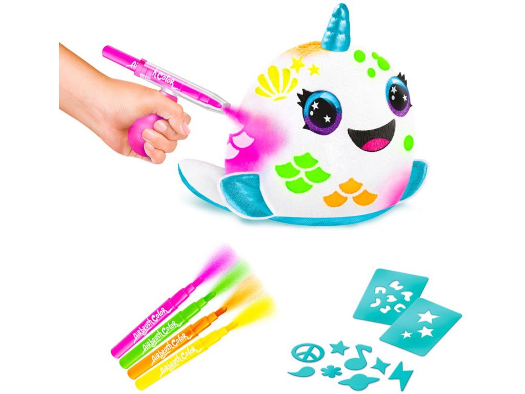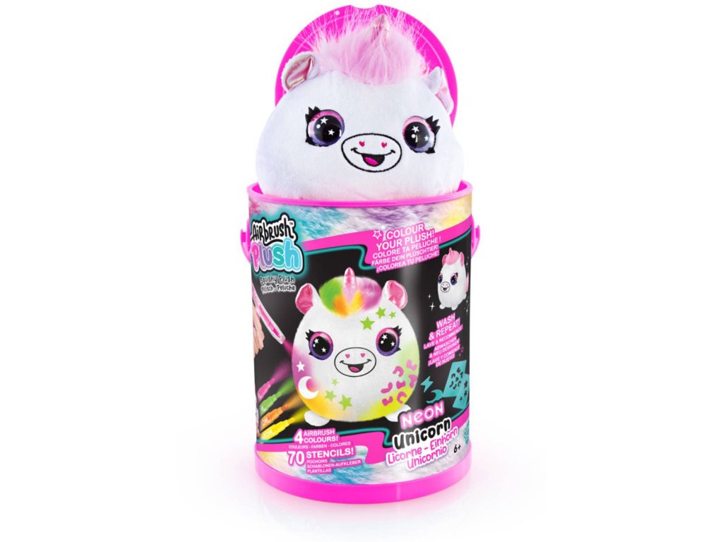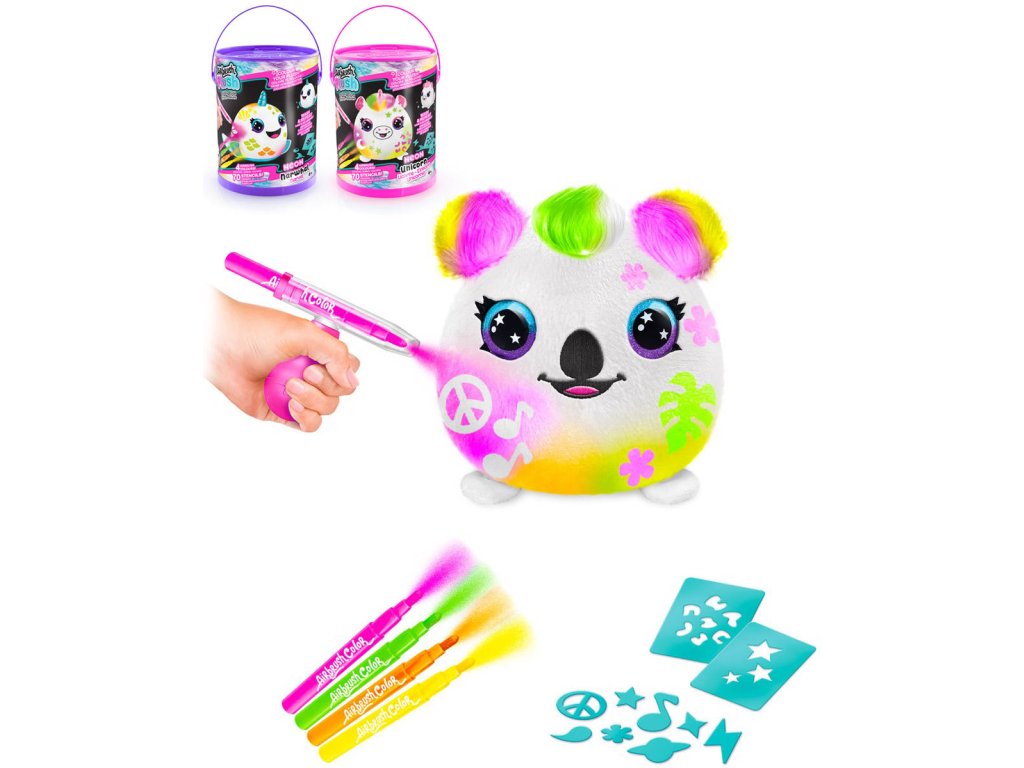 EP Line Airbrush Neon Squish Pals Paint Can - kreativní set, součástí plyšák k vybarvení, fixy, šablony a airbrush pistole, 3 varianty provedení.