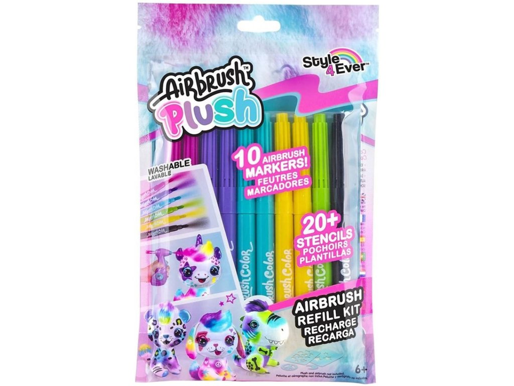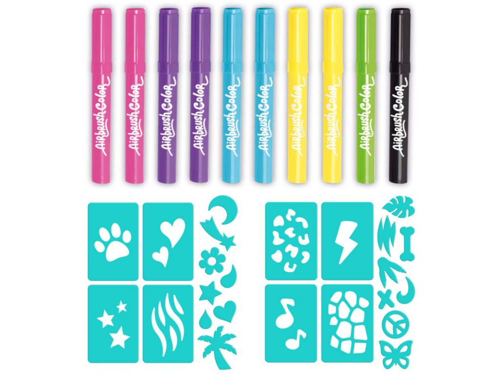 Náhradní originální barevné náplně do airbrushe. Součástí balení je 10 barev a 20 šablon. Vhodné pro děti od 6 let.
