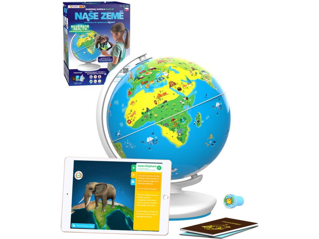 Interaktivní Globus, se kterým se dozvíte mnoho nových věcí a užijete spoustu zábavy. Prozkoumejte více než 400 zajímavostí a více než 1000 faktů napříč 6ti kategoriemi – kultura, kuchyně, památky, vynálezy, zvířata a mapy. Pomocí vašeho zařízení a prostřednictvím stažené aplikace můžete prozkoumat svět.