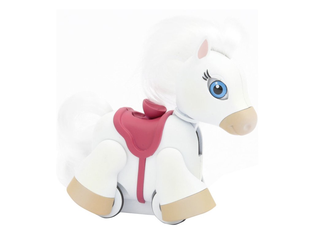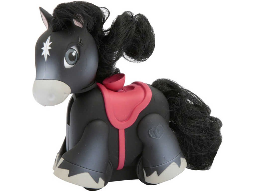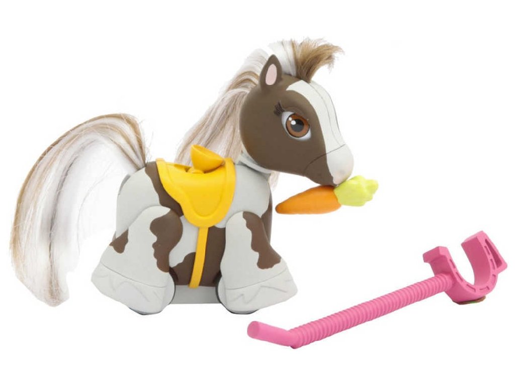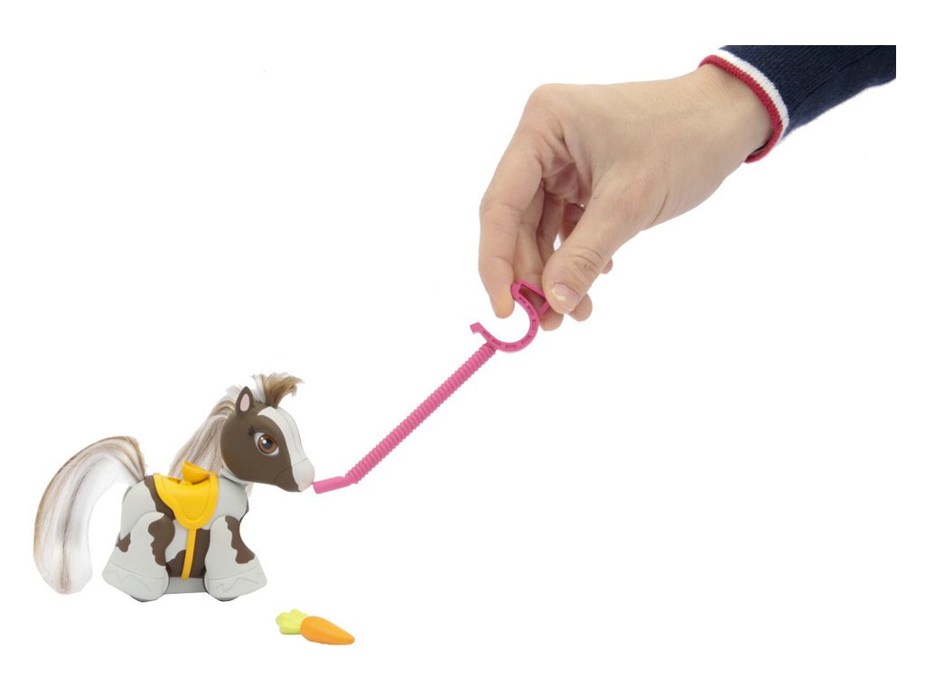 Jsou jako živí. Jsou hraví. Jsou zábavní. A tentokrát to jsou poníci. Přitlačte na ně prstem a oni jako zázrakem ožijí. Podle pohybu vašeho prstu budou hýbat hlavou, ocáskem a budou chodit. Vezměte vodítko, přiložte ho k čumáčku a vezměte svého poníka na procházku. Sledujte, jak legračně hýbe nohama a mrká očima. A to není všechno. Váš zvířecí kamarád dokáže zvednout i mrkvičku. Žádné baterie. Jenom váš prst nebo vodítko. Sbírejte je a hrajte si s nimi. Mají opravdové hřívy a ocasy, které můžete česat. Vyberte si jednoho ze šesti poníků, nebo je mějte všechny.