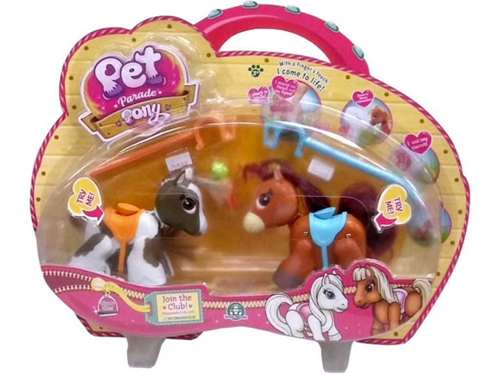 Herní set ve třech variantách provedení, obsahující 2 poníky s doplňky. Poník má na zádech tlačítko s čidlem a podle vašeho pohybu hýbe hlavou i ocáskem a chodí a navíc mrká očima. Součástí balení je vodítko, které lze připnout za uzdu a vzít tak poníka na procházku.