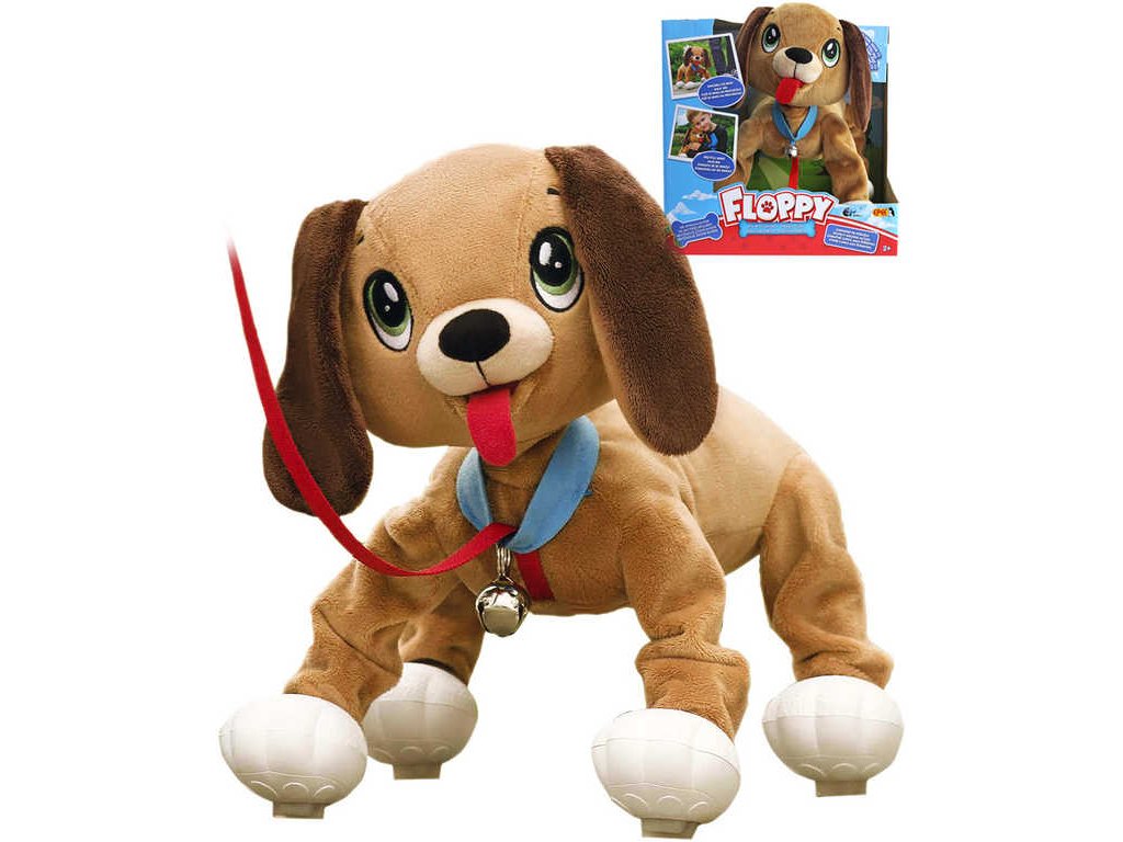 Tahací pejsek Floppy je opravdu bláznivé štěně. A tak rádo chodí na procházky. Chytněte ho za vodítko a sledujte, jak legračně bude za vámi poskakovat. Jeho ťapky jsou zdrsněné a vhodné pro kterýkoli povrch. Jeho rolnička roztomile cinká. Nejsou potřeba žádné baterie. Jenom ho prostě tahejte. Plyšový pejsek s přátelským výrazem, který se rád venčí.