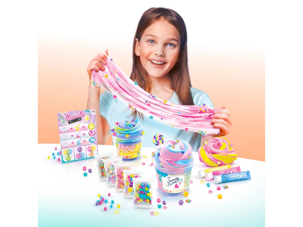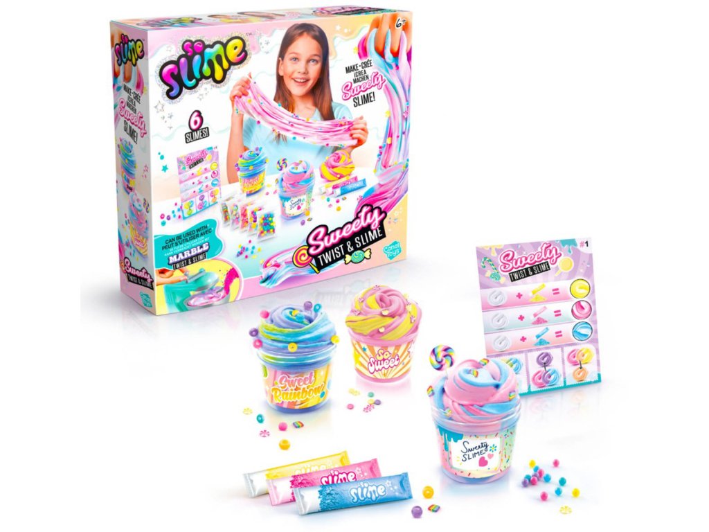 Novinka So Slime – Marble Sweety Twist & Slime sada zabaví všechny tvořivé ručičky. Vytvořte si jedinečné barevné slizy s doplňky pomocí této sady. Míchejte barvy, přidejte ozdoby! Sliz natáhněte a užijte si zábavu.