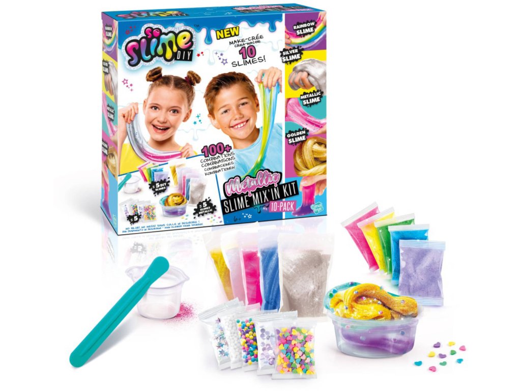 Novinka So Slime Metallic zabaví všechny tvořivé ručičky. Vytvořte si jedinečné barevné a třpytivé slizy pomocí této sady. Míchejte barvy, přidejte ozdoby a třpytky! Sliz natáhněte a užijte si zábavu.