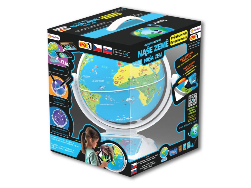 EPEE Interaktivní Glóbus Naše Země – Průzkumník, se kterým se dozvíte mnoho nových věcí a užijete spoustu zábavy. Prozkoumejte více než 400 zajímavostí a více než 1000 faktů napříč 6ti kategoriemi – kultura, kuchyně, památky, vynálezy, zvířata a mapy. Pomocí vašeho zařízení a prostřednictvím stažené aplikace můžete prozkoumat svět.