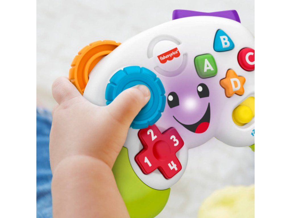 Miminka a batolata se mohou zapojit do herní zábavy s touto veselou hračkou od Fisher-Price. Herní ovladač nabízí dva „herní“ režimy, zábavné praktické aktivity a úžasné písničky a fráze, které seznamují s čísly, tvary, barvami a dalšími prvky, díky nimž si vaše děťátko bude hrát a učit se. Realistický design ovladače obsahuje pohyblivý joystick a tlačítka ABCD a čísla, jejichž stisknutím aktivujete světla, hudbu a zvuky. Pomocí tlačítka zeměkoule můžete zvolit jazyk: polština, maďarština, čeština, slovenština nebo angličtina. Barvy a vzhled výrobku se mohou lišit.