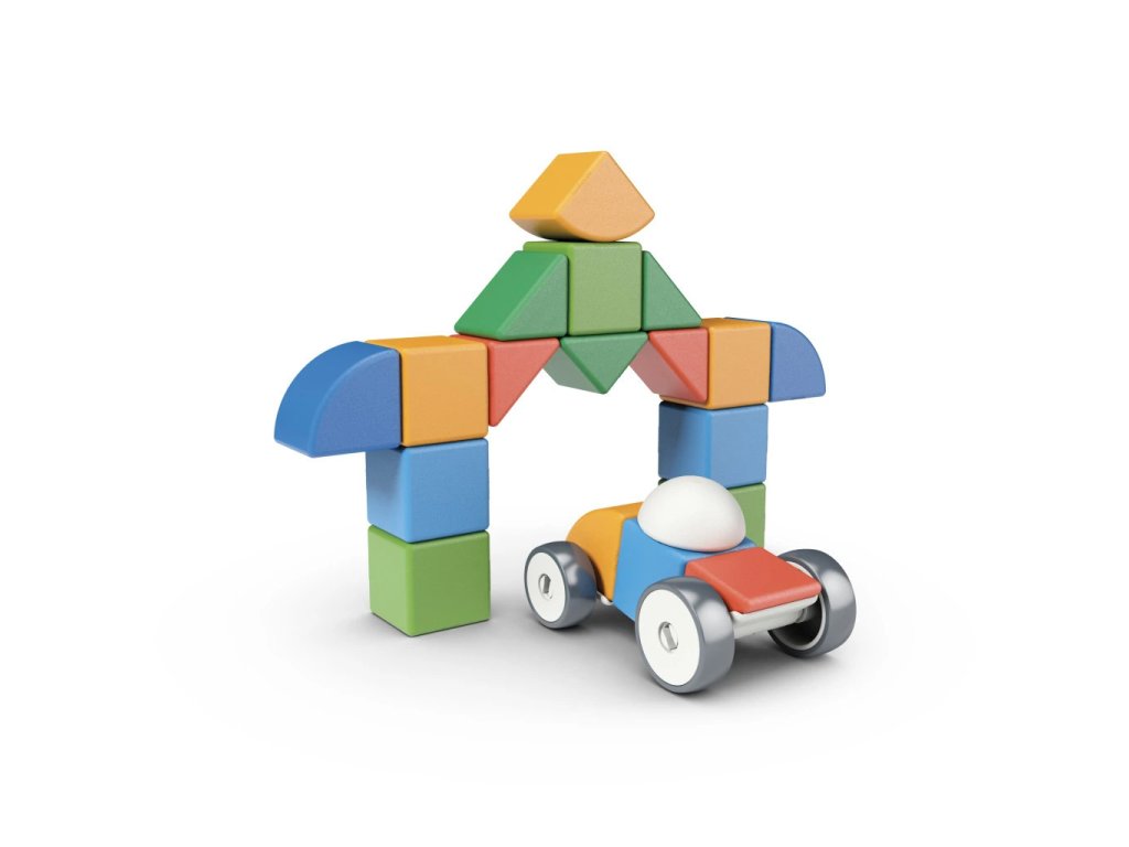 Geomag Magicube Shapes 25 dílků je stavebnice určená pro děti od jednoho roku, která nabízí široké možnosti kreativního tvoření díky magnetickým dílkům v různých tvarech a barvách. Sada obsahuje celkem 25 dílků, přičemž kromě klasických magnetických krychliček jsou zde také čtyři kolečka a další tři speciální tvary, které umožňují stavbu nejen statických modelů, ale i pohyblivých vozidel. Díky magnetickému spoji lze jednotlivé dílky snadno spojovat a přestavovat, což podporuje rozvoj jemné motoriky i představivosti.