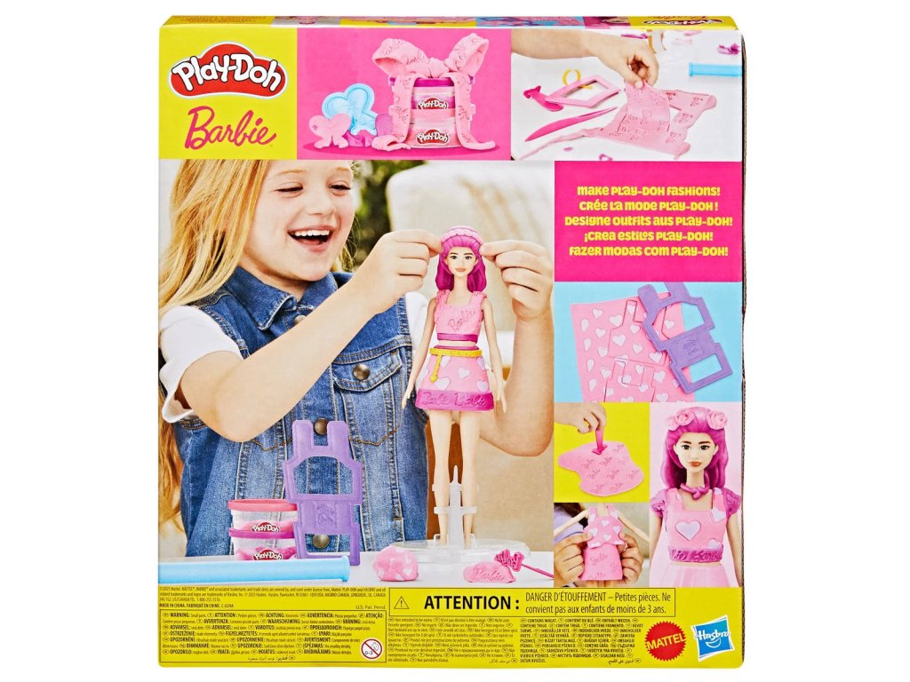 Vytvořte super roztomilé styly se sadou Play-Doh Barbie pro panenky. S touto kreativní sadou je výroba oblečení pro panenku Barbie snadná a zábavná. Jednoduše umístěte panenku na stojan, použijte vzorník a formičky Play-Doh k vystříhání šatů pro Barbie a oblečte ji těmi nejnápaditějšími způsoby. Vytvořte panence dva různé účesy z Play-Doh s formičkami na krátké a dlouhé vlasy nebo si vytvořte vlastní účesy ručně. Přidejte doplňky Barbie, jako je pásek a boty, a dotvořte její vzhled.
