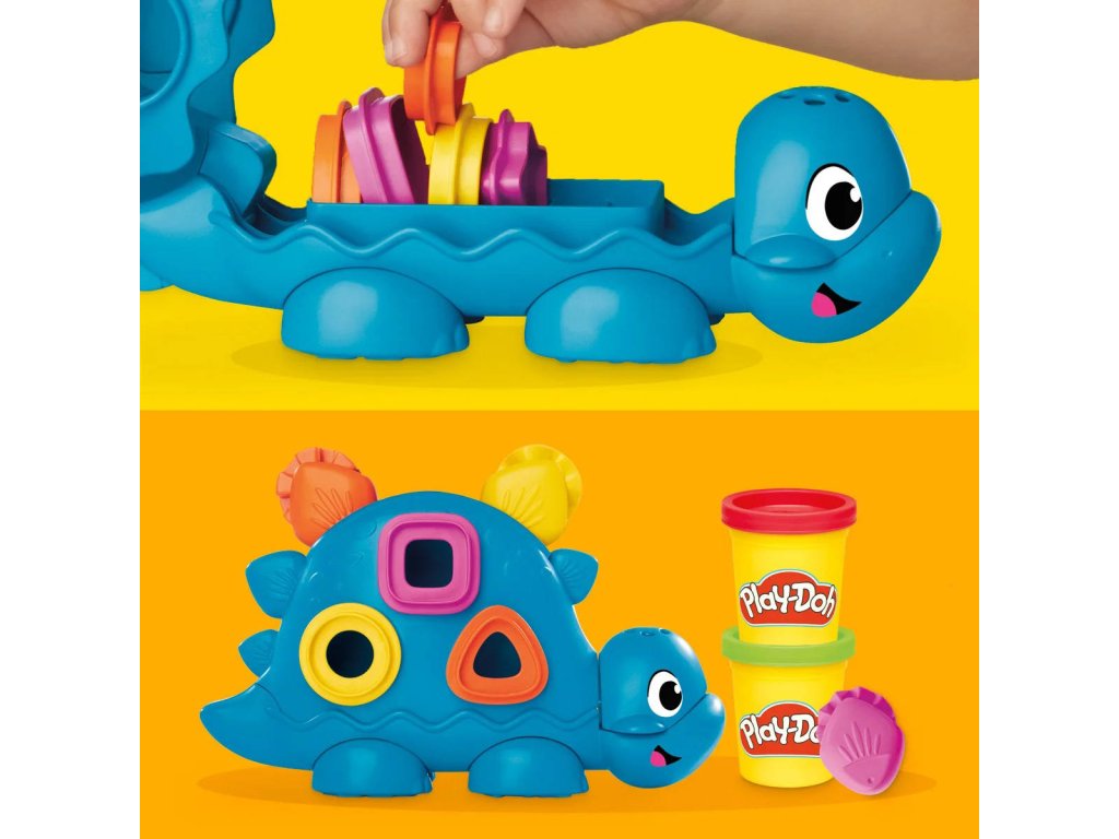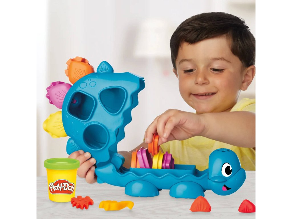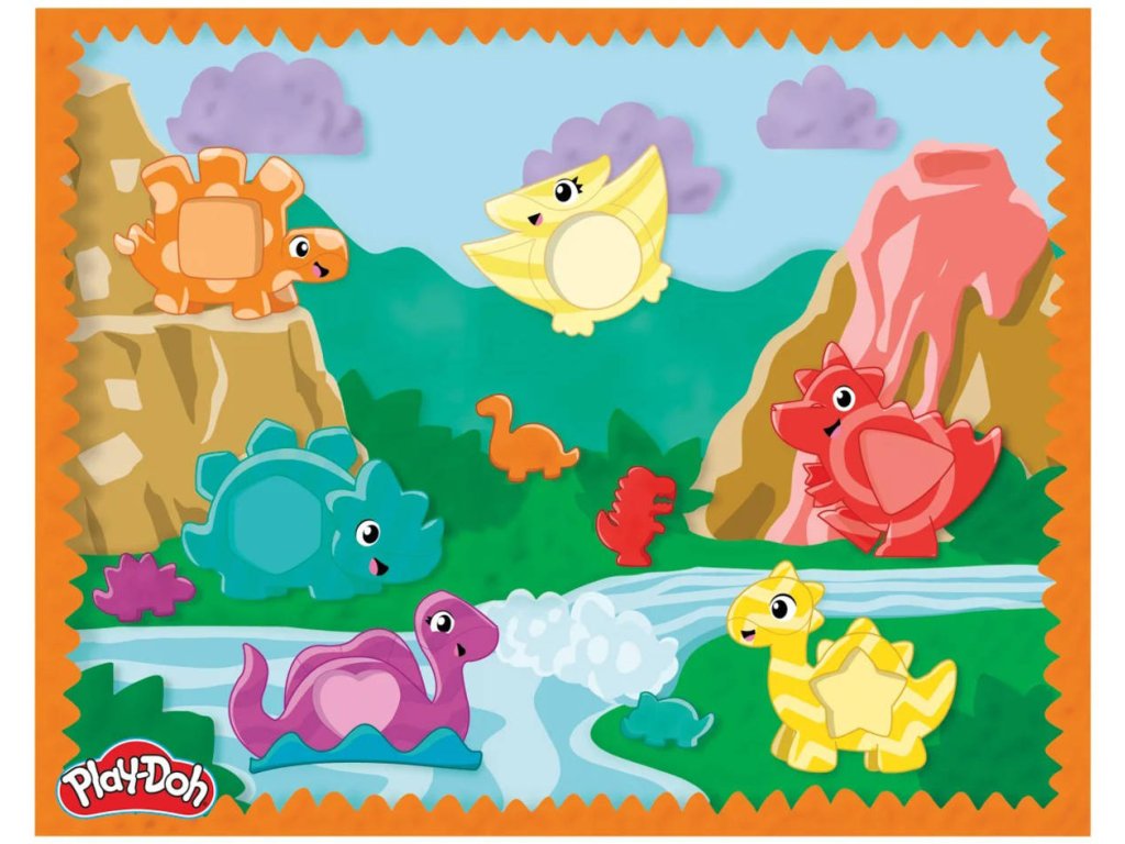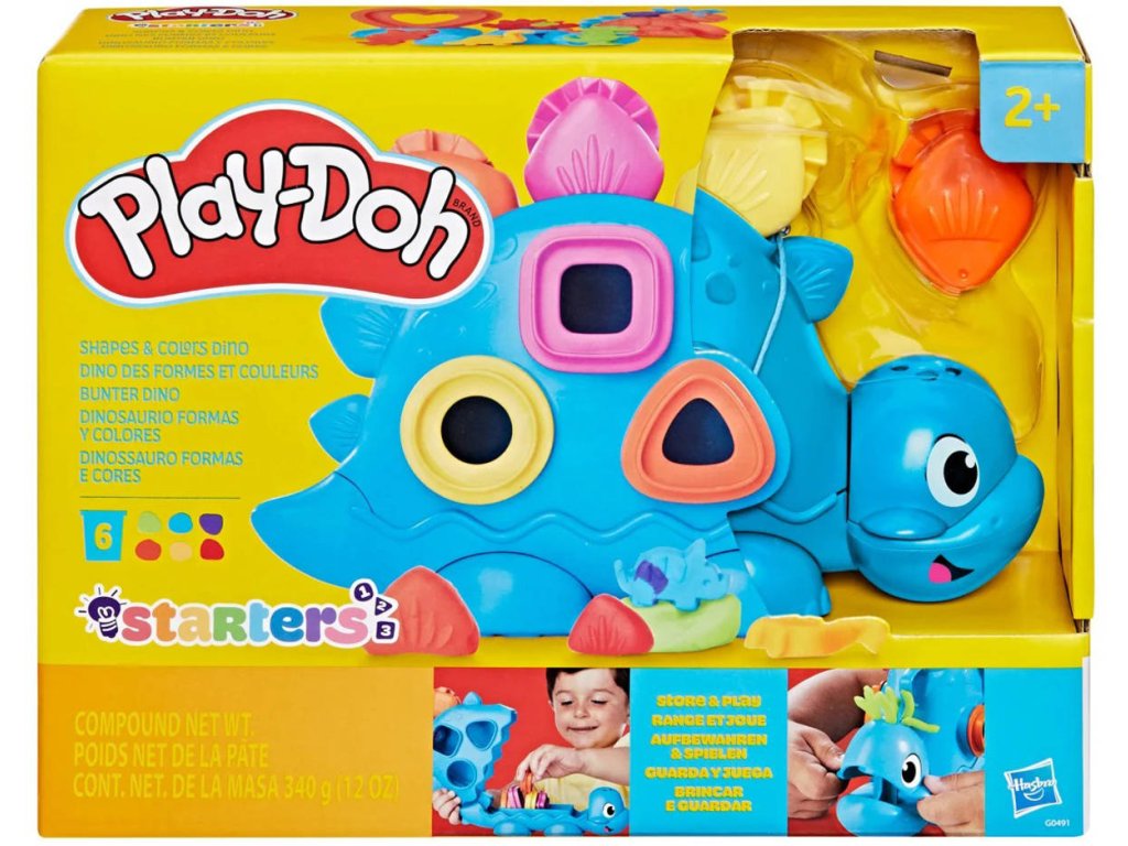 Je čas na dinosauří párty s dinosaurem z Play-Doh – tvary & barvy. Tato sada hraček pro děti nabízí řadu zábavných aktivit s rozkošným dinosauřím kamarádem. Vystřihujte a válejte různé tvary s příslušenstvím Play-Doh. Praktický dinosaurus také umožňuje uložení nářadí uvnitř i zvenku dětské herní sady. Herní podložka nabízí zábavné párovací aktivity, které dětem také pomohou udržet si výtvory z Play-Doh mimo stůl. Je to skvělá hračka pro rozvoj fantazie, která je může povzbudit k procvičování jemné motoriky a objevování tvarů a barev pomocí hmatové hry. Objevujte tvary a barvy s prehistorickým kamarádem, který obsahuje 11 velkých, robustních nástrojů a zábavné senzorické herní aktivity pro děti od 2 let. Naplňte dinosaura hmotou a přitlačte ji k hlavě, aby mu narostly legrační vlasy z plastelíny. Sada obsahuje 6 kelímků modelovací hmoty.
