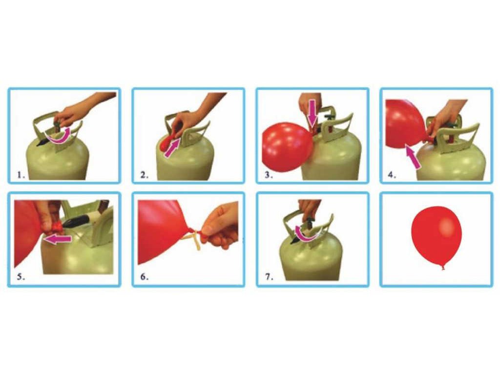 S touto héliovou bombou nafouknete 50ks (9"/22,9cm) latexových balónků. Lze použít i k nafukování fóliových balónků (18" / 16 balónků). Láhev s héliem je pro jedno použití a je nevratná.