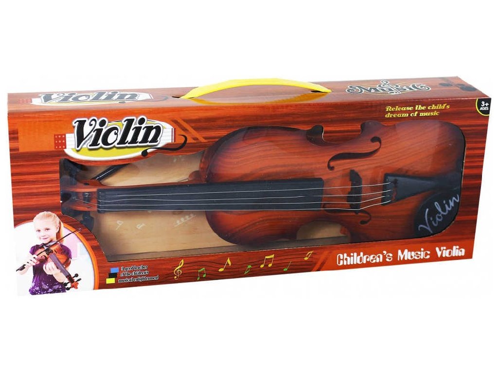 Plastové housle se smyčcem, díky kterým děti mohou rozvíjet svůj hudební sluch. Vše je uloženo v krabici s praktickým úchytem.