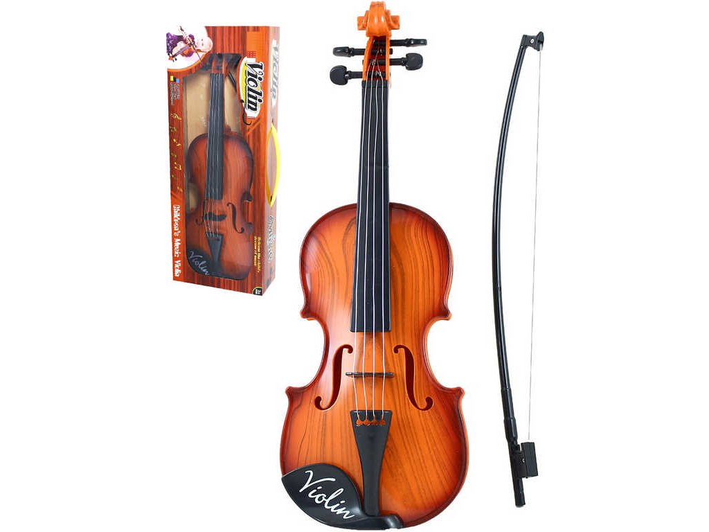 Housle dětské plastové se smyčcem imitace dřevo Zvuk v krabici