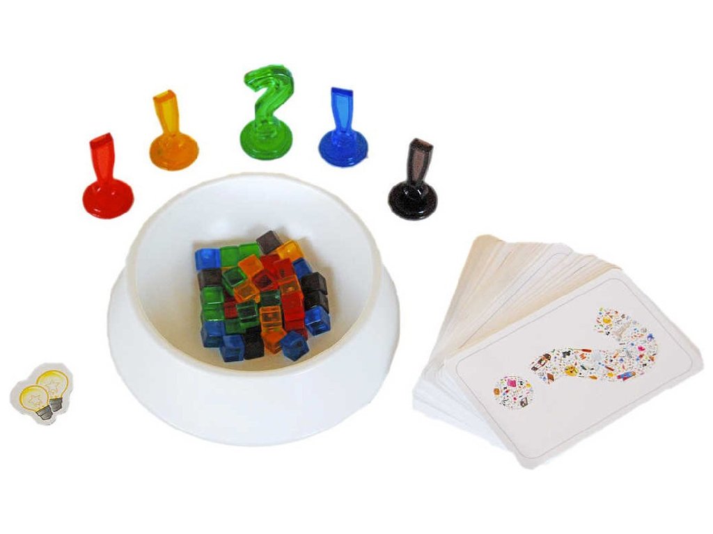 1 zelená sada pro označení hlavního konceptu (velký symbol otazníku a 10 kostiček) -